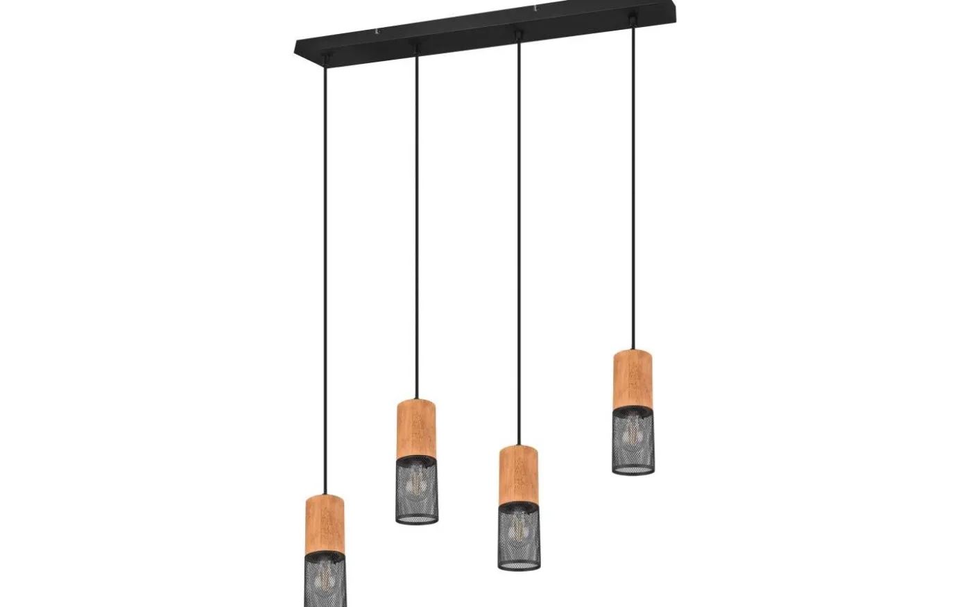 Den moderna blandningen av metall och trä ser tidlös ut och är helt trendig. Kombinationen med naturmaterial har blivit en integrerad del av moderna bostadsutrymmen och skapar även en mysig atmosfär. TOSH-pendellampan är därför ett perfekt val för rätt ljusstämning och det där lilla extra. Placerad i mitten ovanför matbordet är den 4-delade pendellampan särskilt effektfull. Metall i mattsvart tillsammans med träelementen kan hittas i moderna och minimalistiska inredningsstilar. För modern och pålitlig belysning rekommenderas en LED-lampa. Den erbjuder hög ljuskvalitet, är mångsidig och övertygar med jämn belysning. Dess långa livslängd och låga värmeutveckling gör den till det perfekta valet för en mängd olika användningsområden. Ljuskälla: exklusiv 4x E27 · max. 40W. Extra information: Justerbar i höjd, Takmontering, IP20, Lampa(or) ingår ej
