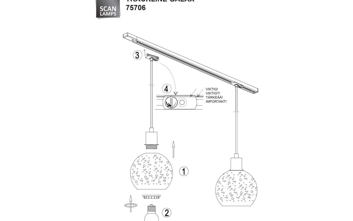 TRACKLINE GALAX en rund metallskärm med liten hålbild som ger ett mjukt sken. Pendel för inkoppling på skena. 40W E27 (ingår ej).