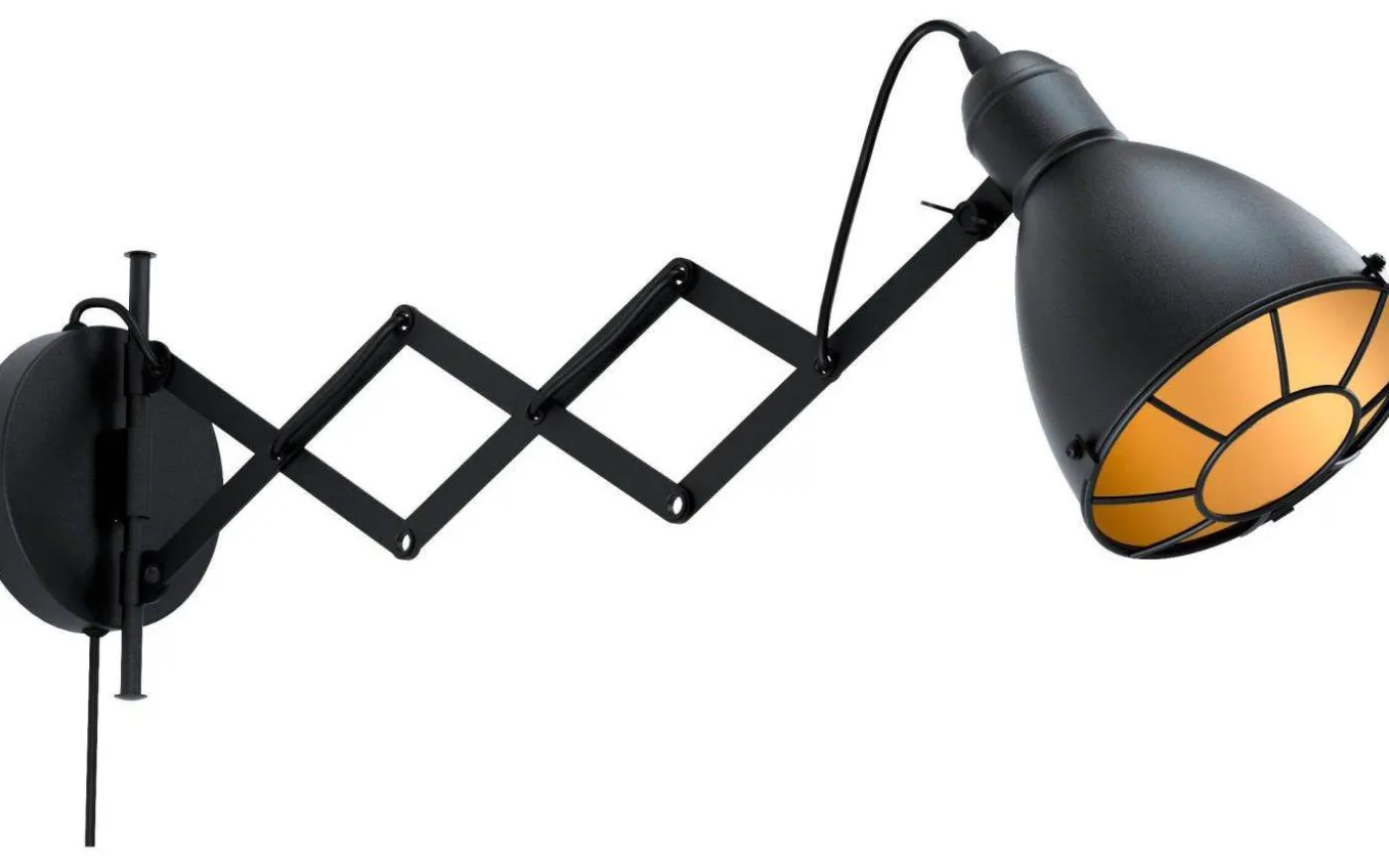 Treburley vägglampa från Eglo är en funktionell vägglampa med svängbar dragspelsarm. En tuff industriell lampa som passar i många rum som exempel i kök, sovrum eller över soffan. Vägglampan är av stål i svart finish, skärmens insida är guldfärgad för att reflektera ljuset bättre.