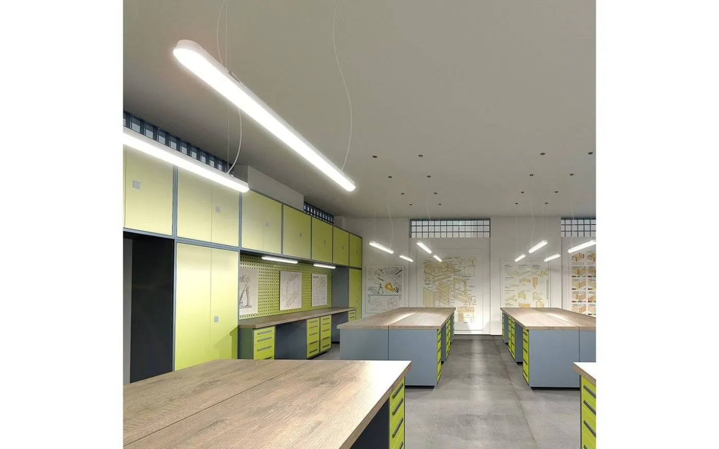 Trident från Rendl Light Studio är den modernare variant med integrerad (inbyggd) LED av den klassiska lysrörsarmaturen. Tillverkad i matt akrylplast.