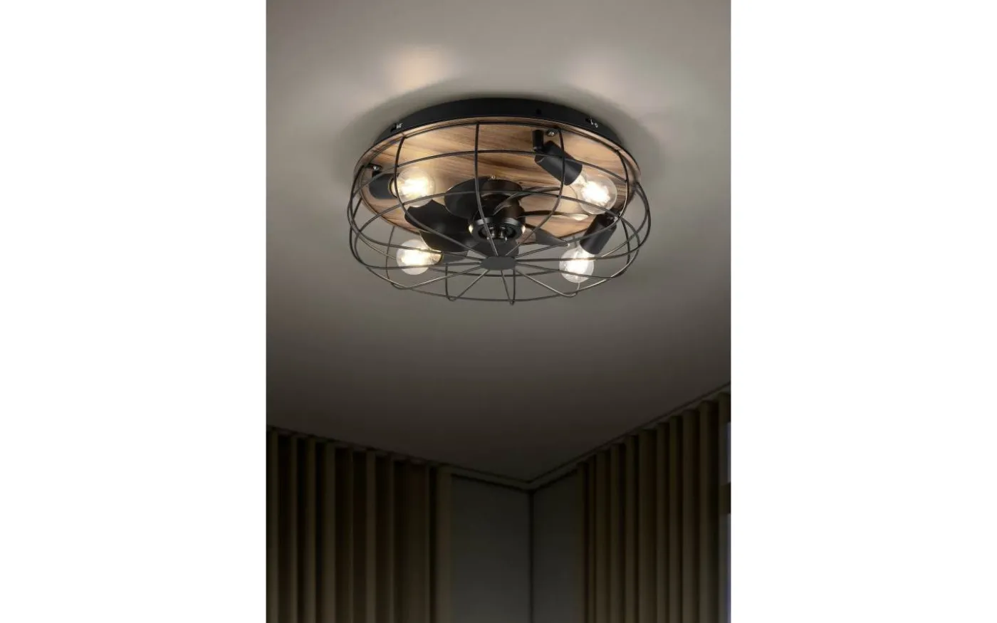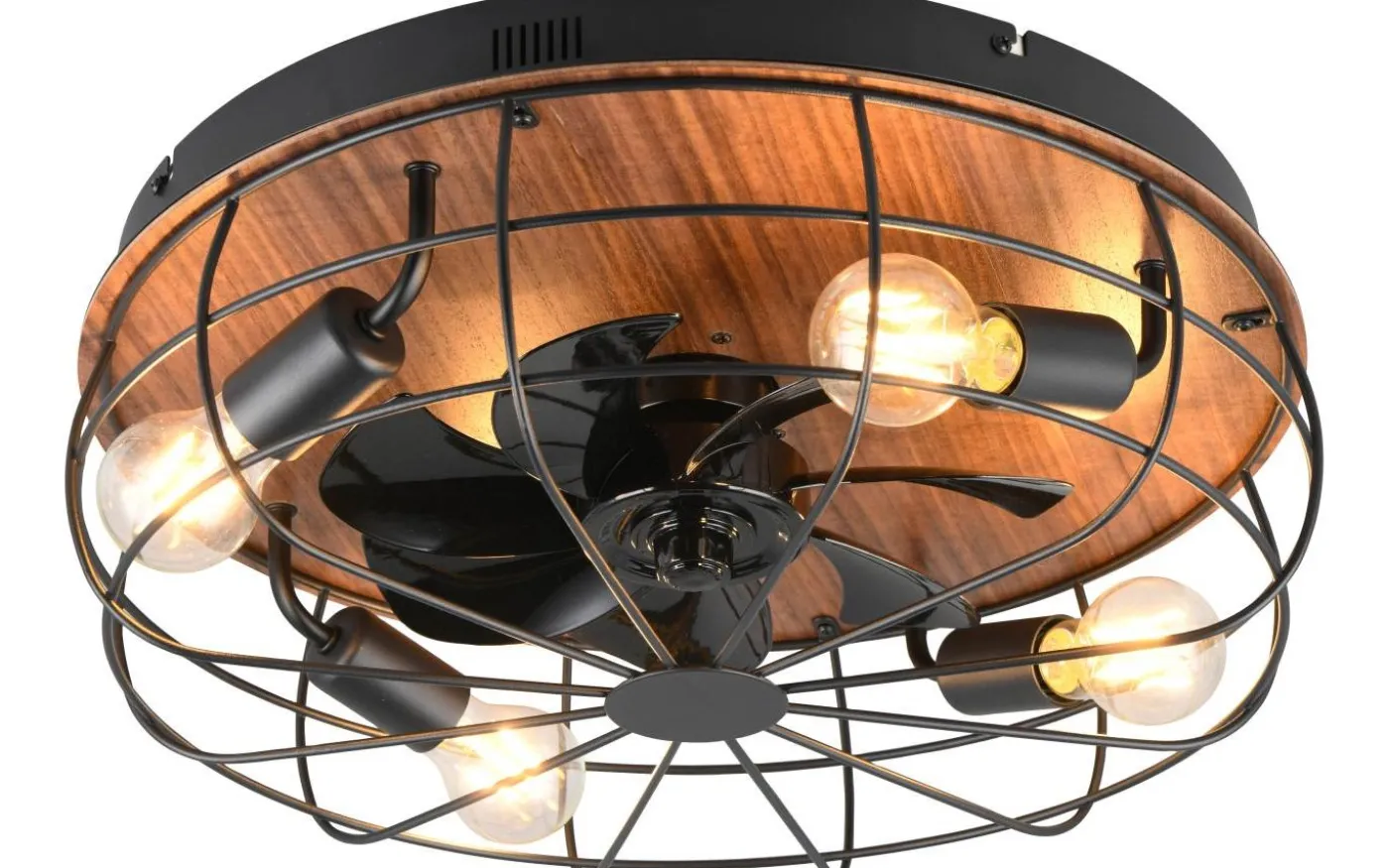 Trondheim Takfläkt 48cm 4xE27 matt svart/trä