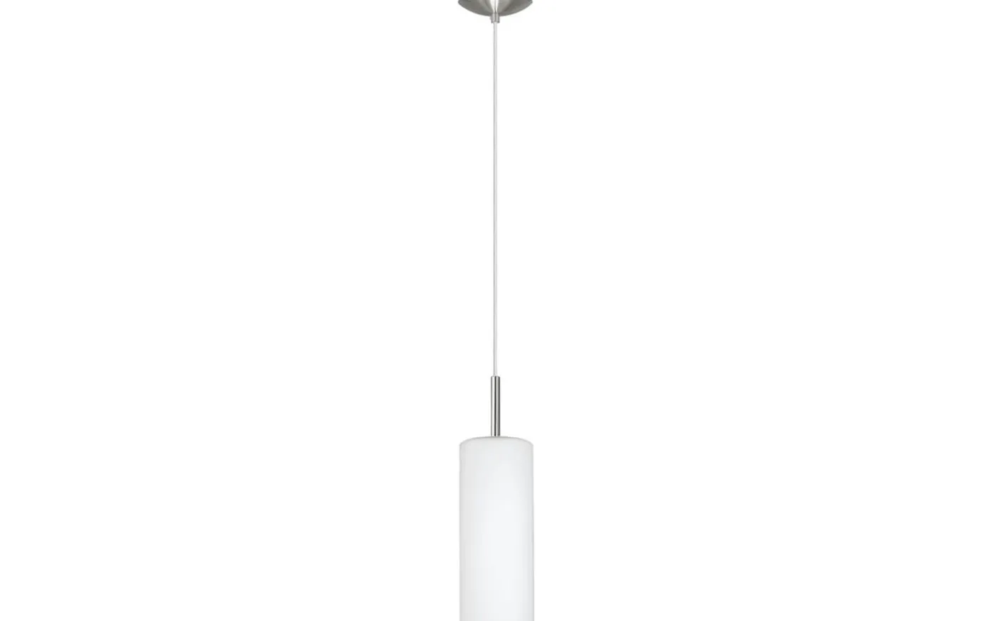 TROY 3 taklampa är gjord av metall i en matt nickelfinish och har en upphängd cylindrisk lampskärm av vitt satinglas. Den enkla designen fungerar bra med nästan alla inredningsstilar och skapar mysig belysning i alla utrymmen, oavsett om det är i vardagsrummet eller matsalen.