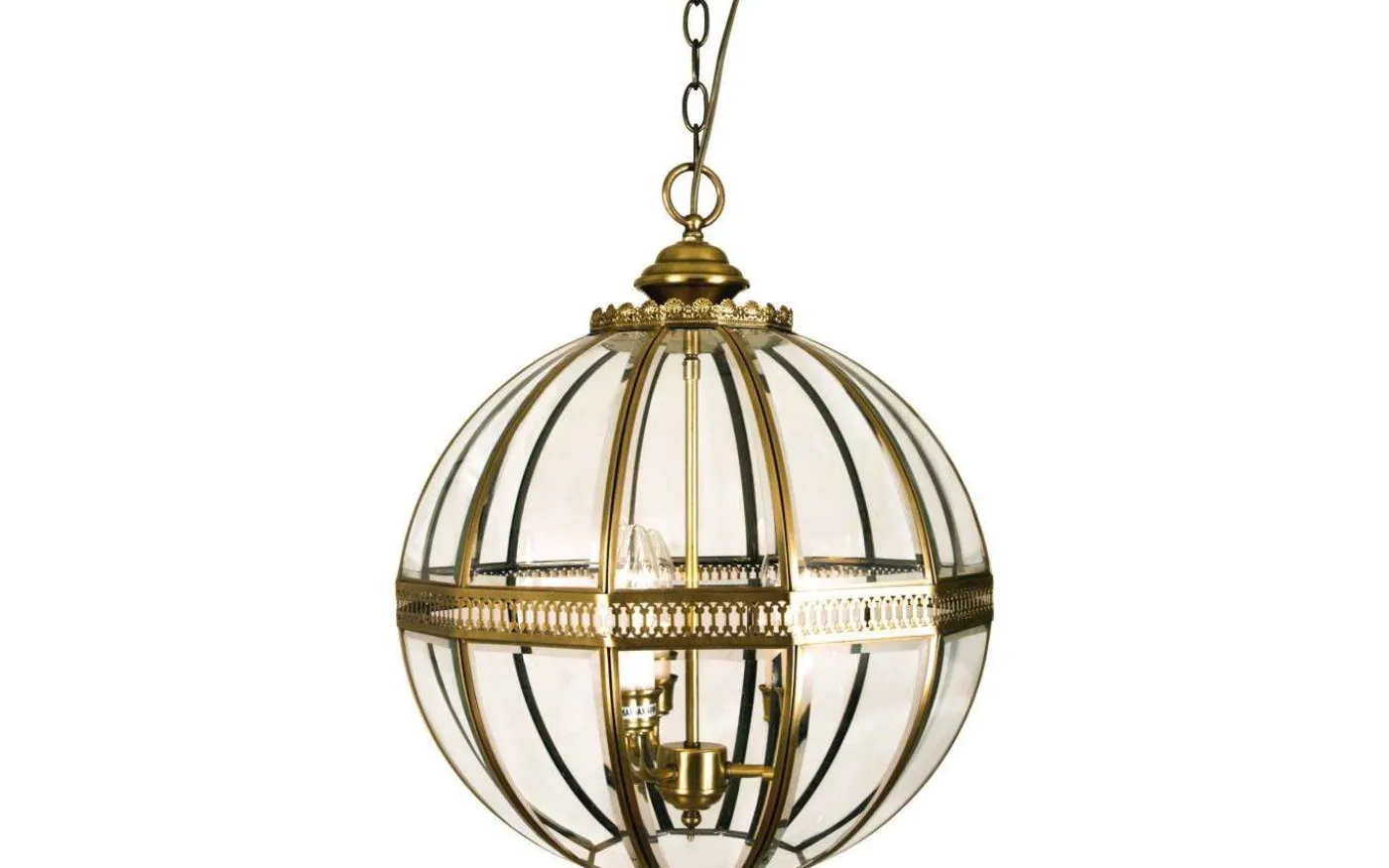 TSAR en stilfull taklampa i solid mässing och fasetterat glas. Hängs i kedja av mässing. 3 x 40W E14 (ingår ej). Krokupphäng med takkopp i mässing.