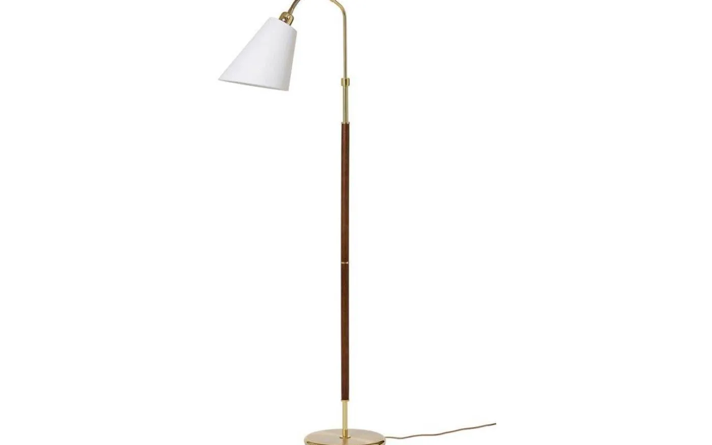 Tullgarn golvfot från Armaturhantverk är en golvfot i klassisk design med egen tillverkning i Sverige. Golvfoten är tillverkad i en vacker kombination av mässing och valnöt som skapar ett exklusivt intryck. Lamphuvudet är reglerbart så att du enkelt kan rikta ljuset efter önskemål och behov. Tänder och släcker gör du med vippströmbrytaren som sitter på lamphuvudet.