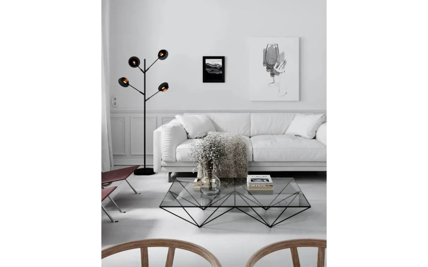Ljuskällor säljes separat, till denna golvlampa behöver du fyra stycken. Komplettera med några av våra ljuskällor i LED som inte utsöndrar värme, har låg energiförbrukning och lång livslängd. Se passande förslag under ”Tillbehör”.