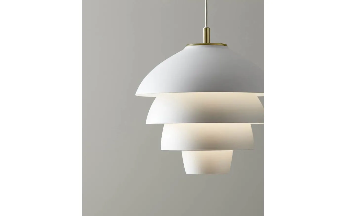 Valencia taklampa är designad av Joakim Fihn för varumärket Belid. Taklampan har en vit matt finish med stilfulla detaljer i mässingsfärgad metall.