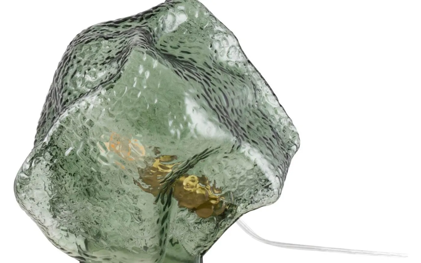Valerie från Globen Lighting är en bordslampa med form som en sten och ett glas som fångar ljuset med sin strukturerade yta. Det munblåsta glaset gör varje lampa unik i tjocklek och färg, och med detaljer i borstad mässing ger en klassisk touch.