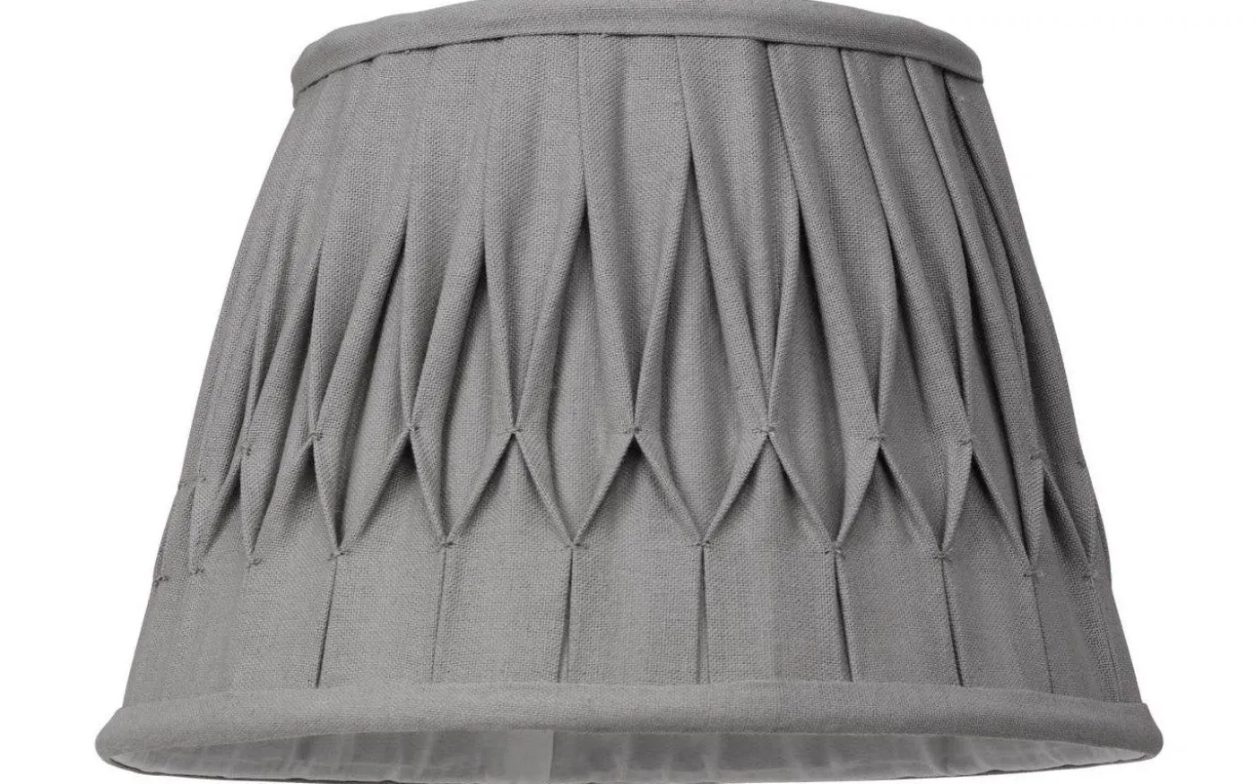 En vackert veckad lampskärm från välkända Cottex. Lampskärmen är av linne och fästes med ringfäste avsett för E27-sockel. Skulle det vara så att du har en tak, golv- eller bordslampa med E14 sockel medföljer en E14 skärmring som gör det möjligt.