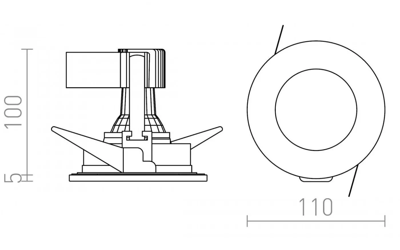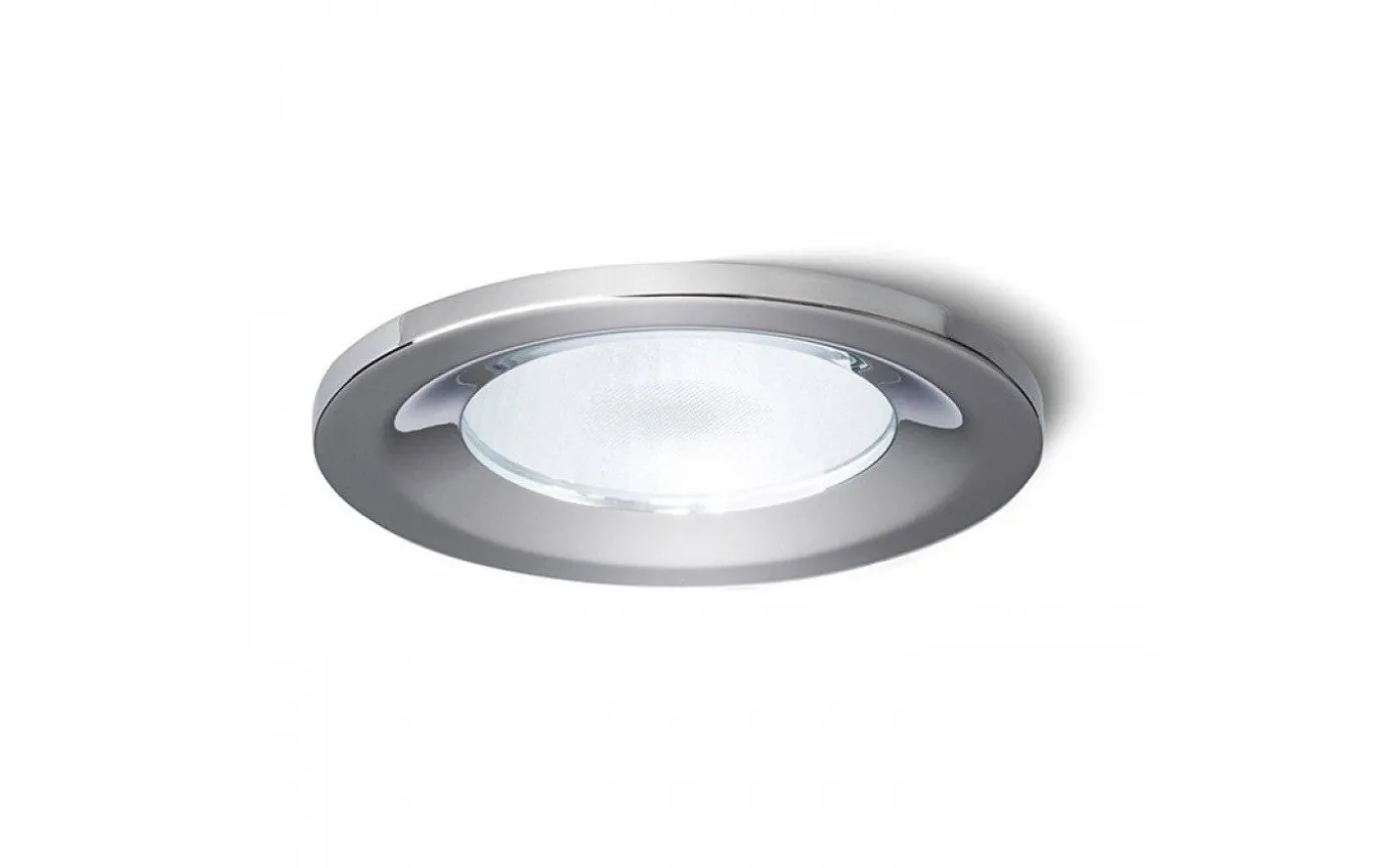 Infälld lampa för våtutrymmen med en täckskiva av delvis satinerat glas. Transformator tillkommer.