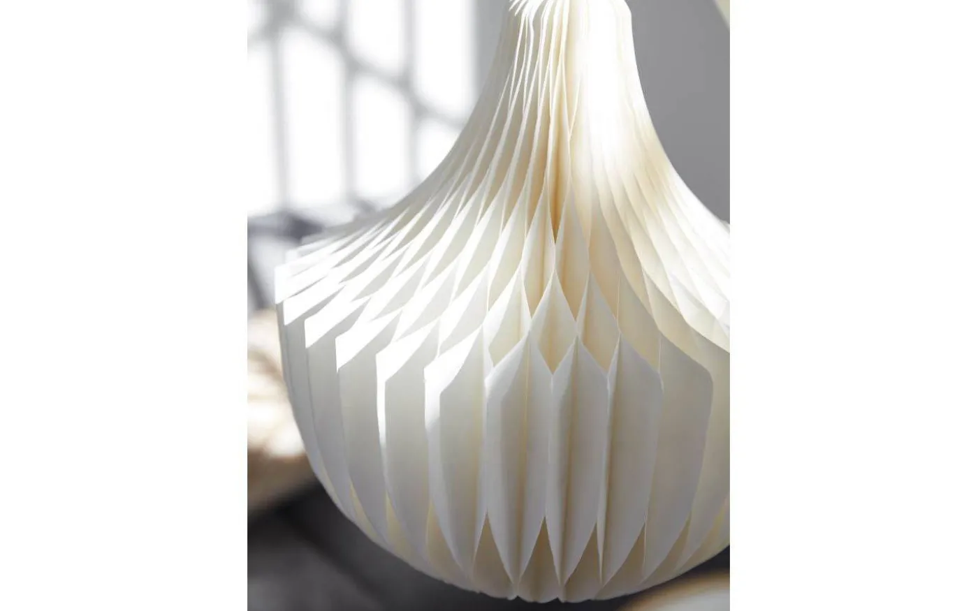 Vick takskärm från PR Home är en vacker, handgjord pappersskärm i ett vitt kraftigt FSC-märkt papper. Origamitekniken som använts är ett gammalt konsthantverk från Asien. Denna skärmen har en klassisk ljuskronsform och ger ett vackert sken när den är tänd.