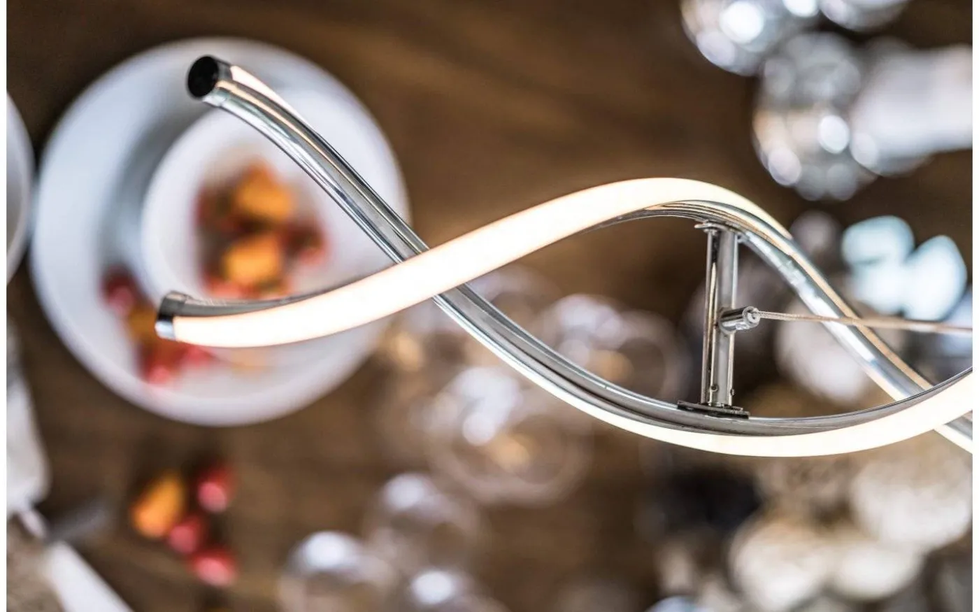 Fina Vindla taklampa, från Cottex, är en riktig blickfångare i spännande design! Gjord i blank, härlig krom med inbyggd ljuskälla i LED sprider den ett behagligt ljus och blir garanterat en häftig inredningsdetalj i ditt hem.