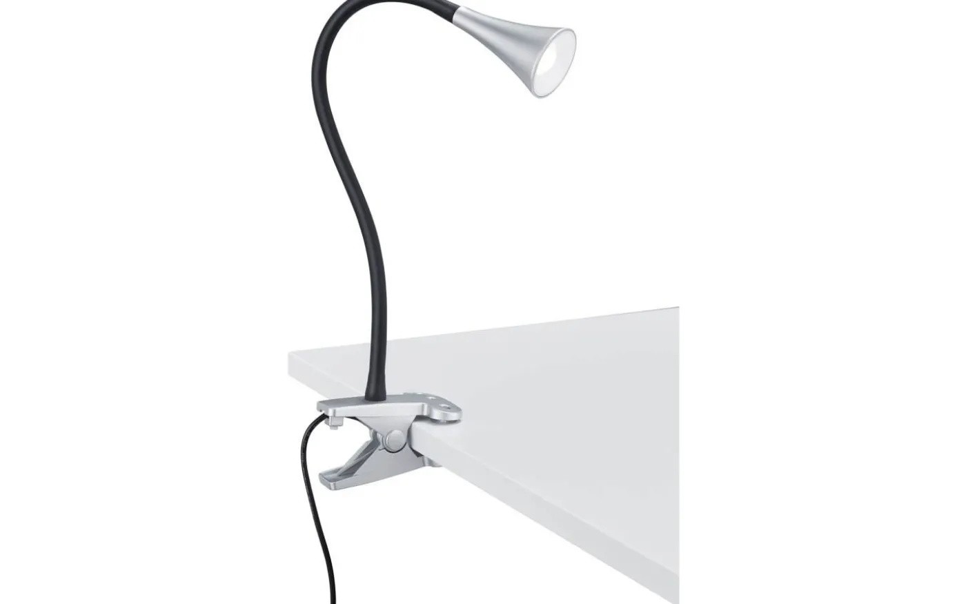 VIPER-klämmlampan imponerar med sin flexibilitet. Den integrerade klämman gör den enkel att fästa på till exempel ditt bord. Hela lamphalsen är flexibel så att du optimalt kan belysa önskat område. Ljuset kan tändas och släckas med den integrerade sladdströmbrytaren. Den är designad i titanfärg och svart och passar därför in i alla vardagsrum. Dessutom har armaturen modern LED-teknik, som kännetecknas av hög ljuskvalitet och energieffektivitet. Jämfört med konventionella halogenlampor kan upp till 80 % av energikostnaderna sparas. Dessutom har LED-ljuskällor lång livslängd, producerar mindre värme och skyddar miljön. Ljuskälla: inklusive 1x SMD LED, 3W · 1x 350lm, 3000K. Extra information: Kabelbrytare, Feature112, Flexibel, IP20