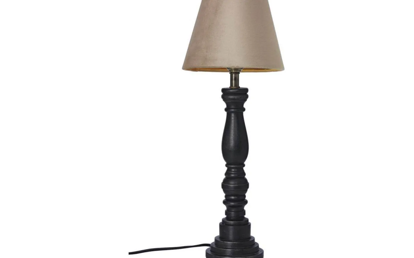 Virkes lampfot från Cottex är tillverkad av trä med vackert svarvade linjer och ha detaljer i borstad mässing. Levereras med en 1,4m lång anslutningskabel med strömbrytare och stickkontakt för vägguttag.