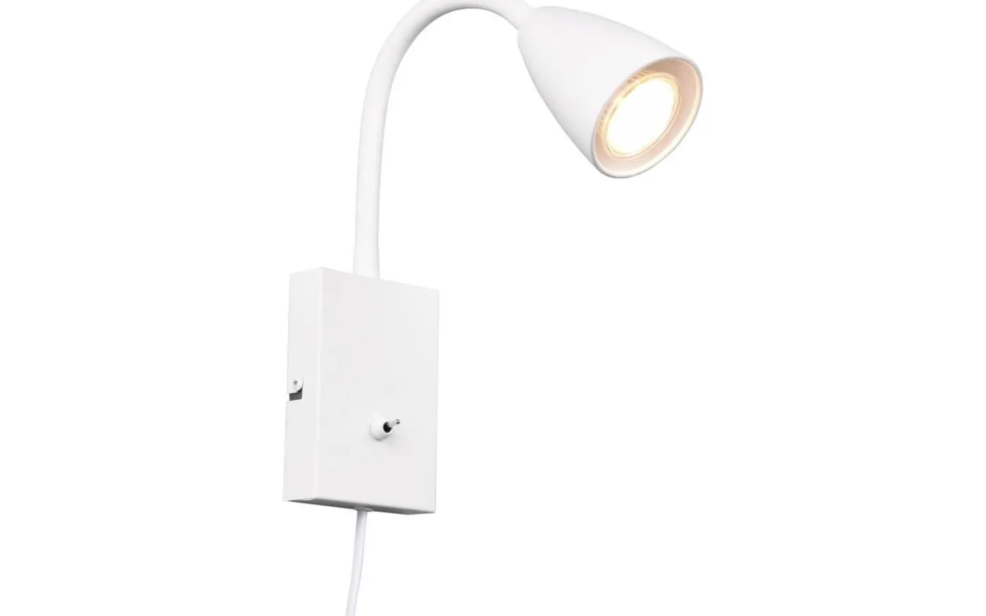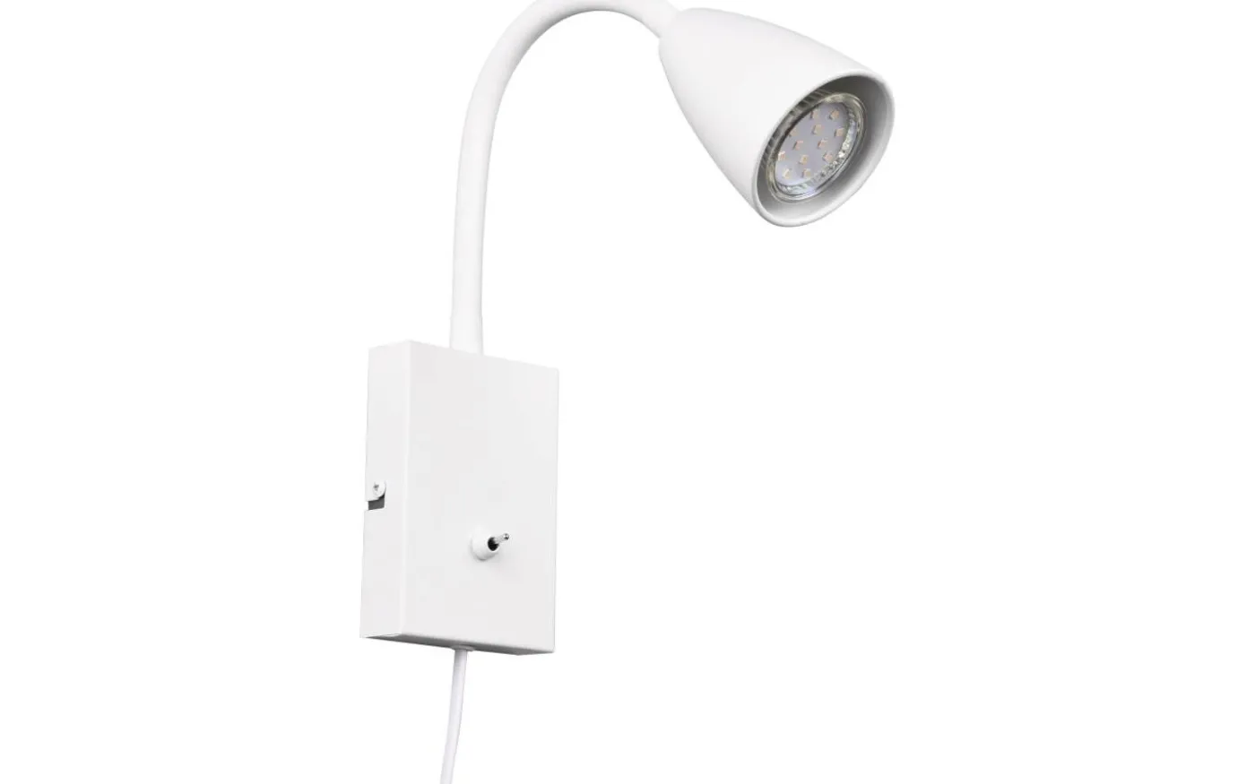 Skapa vackra ljusa stunder i ditt sovrum med den klassiska vägglampan WANDA. Rätt placerad ger den optimal belysning tack vare de flexibla och individuella justeringsmöjligheterna. Armaturens flexibilitet utökas med FLEXconnect-funktionen, eftersom den är direkt lämpad för fast anslutning även utan kabeldragning och kan styras via en vanlig väggströmbrytare. I detta fall kan sladden tas bort från lampan. Den moderna och eleganta designen understryks av färgschemat i mattvitt. För modern och pålitlig belysning rekommenderas användning av en LED-lampa. Den erbjuder hög ljuskvalitet, är mångsidig och övertygar med jämn belysning. Dess långa livslängd och låga värmeutveckling gör den till det perfekta valet för en mängd olika tillämpningar. Ljuskälla: exklusiv 1x GU10 · max. 10W. Extra information: Flexibel, IP20, Lampa(or) ingår ej, Strömbrytare, Väggmontering