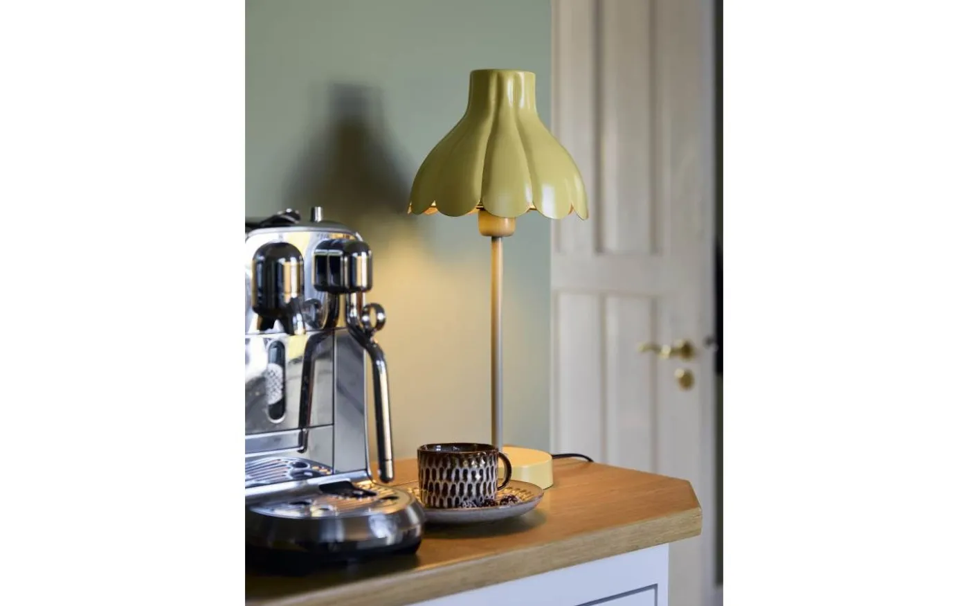 Wera bordslampa från PR Home är tillverkad helt i metall i en vacker pastellfärgad finish. Lampskärmen har en guldfärgad insida som sprider ett varmt och härligt sken. Lampskärmen är handgjord så mindre avvikelser i höjd och bredd kan förekomma vilket gör att varje Wera bordslampa blir unik.