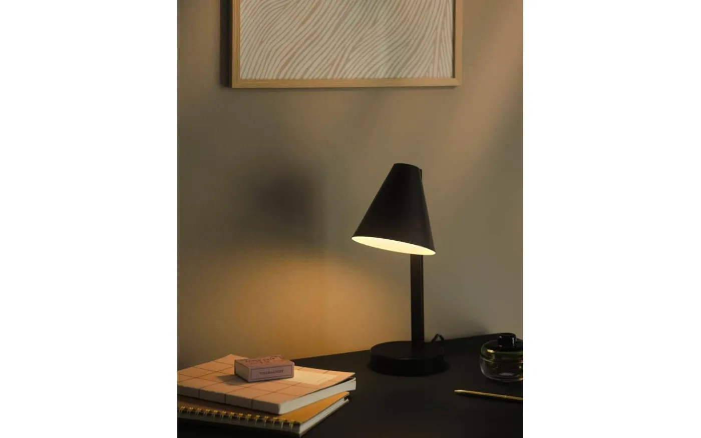 Den lilla bordslampan Wilmer har en minimalistisk design som inte tar upp mycket plats. Den inbyggda USB-C-porten gör det enkelt att ladda telefonen och skärmen kan vridas från sida till sida. Perfekt som sänglampa eller på ditt skrivbord för att ge bra arbets- eller läsbelysning.