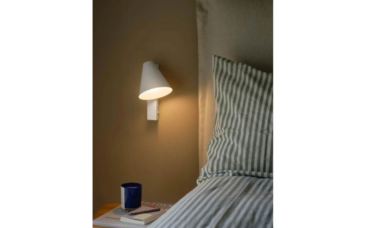 Den lilla vägglampan Wilmer har en minimalistisk design som inte tar upp mycket plats. Den inbyggda USB-C-porten gör det enkelt att ladda telefonen och skärmen kan vridas från sida till sida. Perfekt som sänglampa för att ge bra läsbelysning.