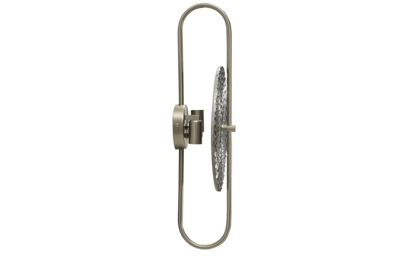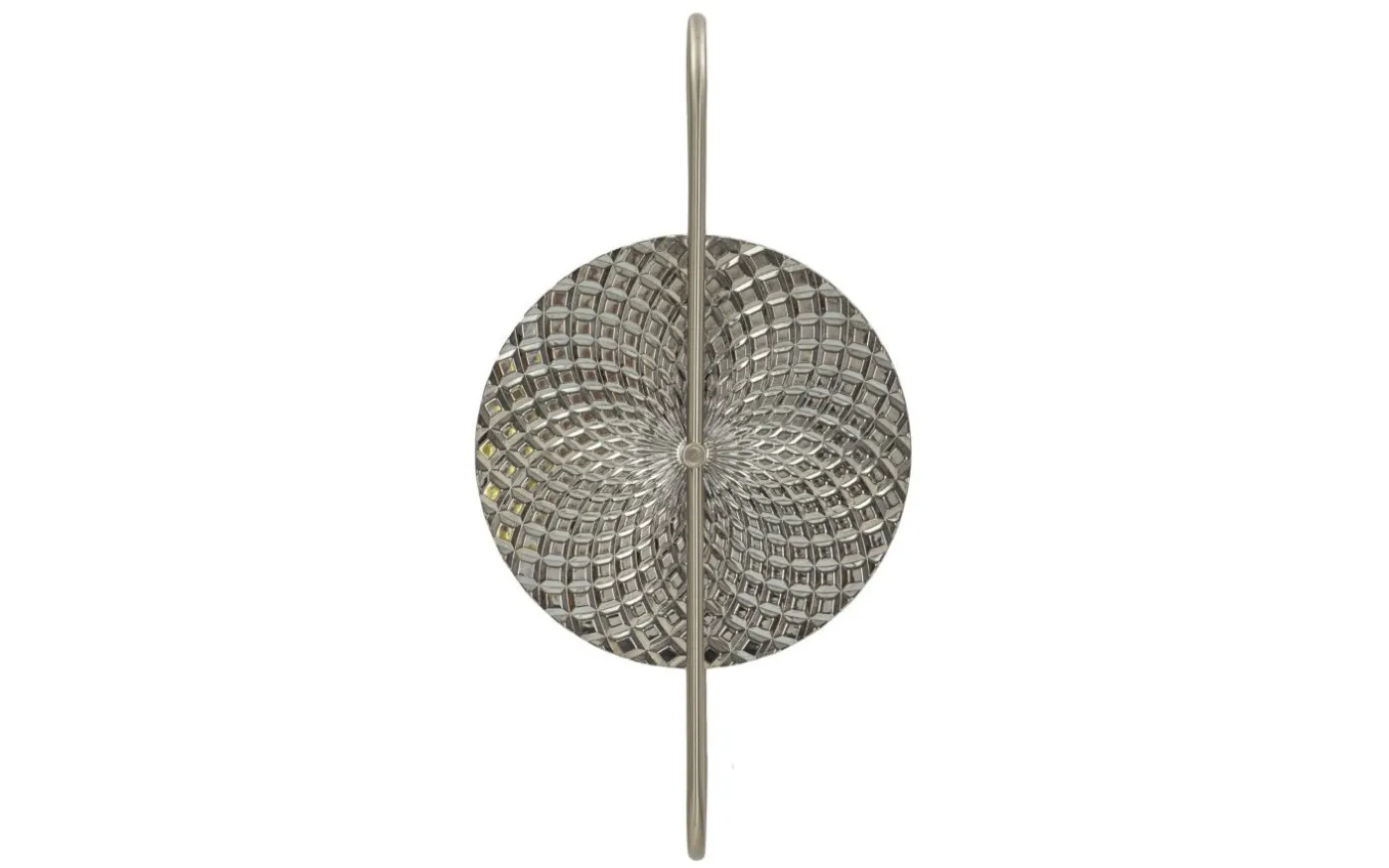 Vägglampa med 2 ljuspunkter i silvermetall och glas i cirkulär form med eleganta dekorativa element i relief.