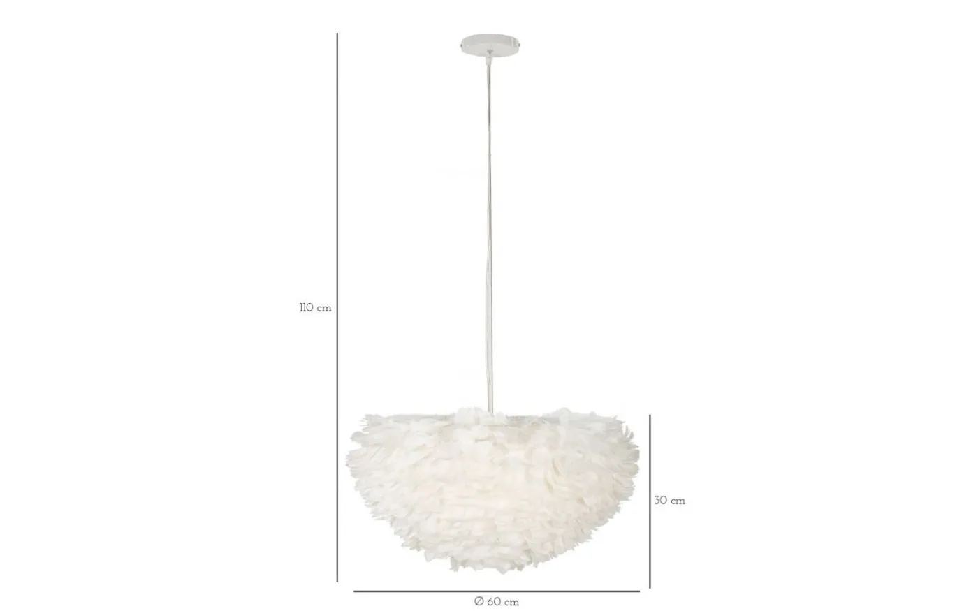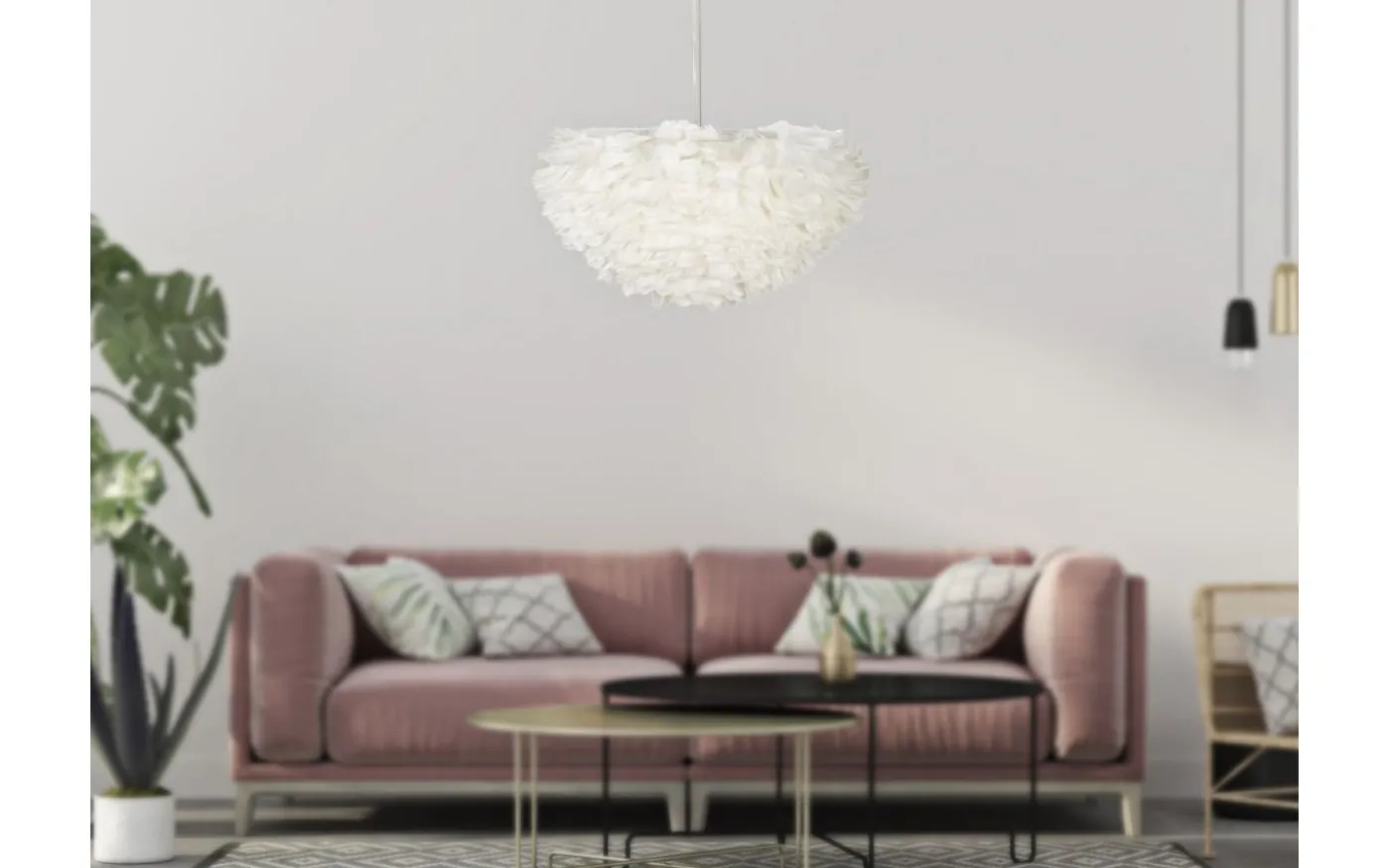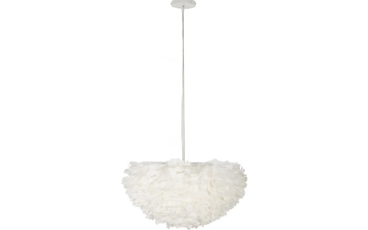 Enkel taklampa som består av en uppsättning syntetiska fjädrar.