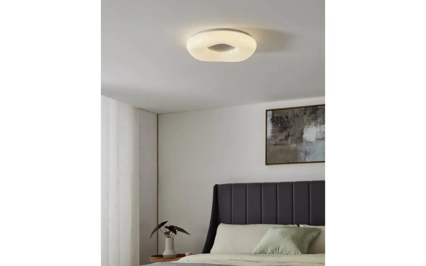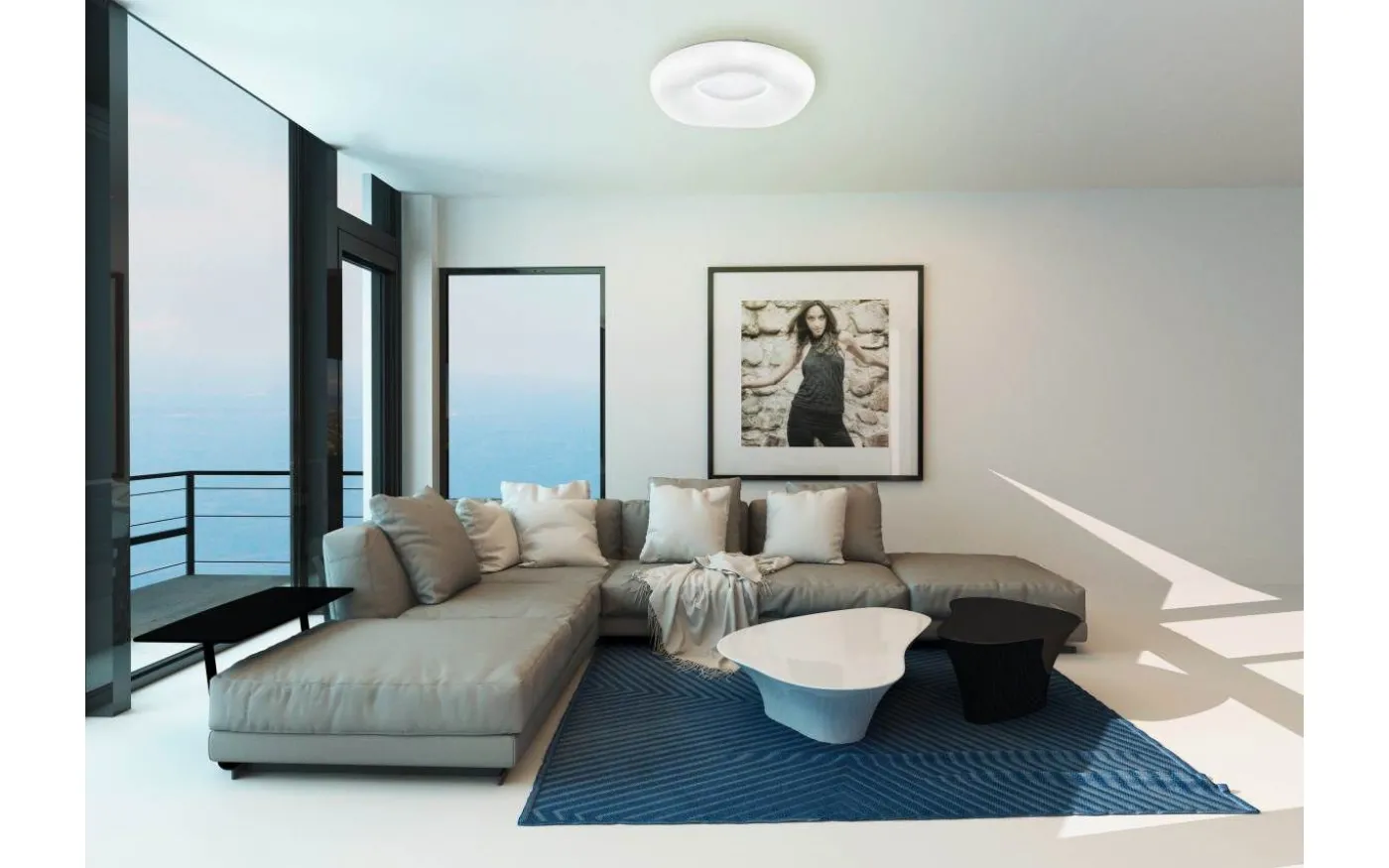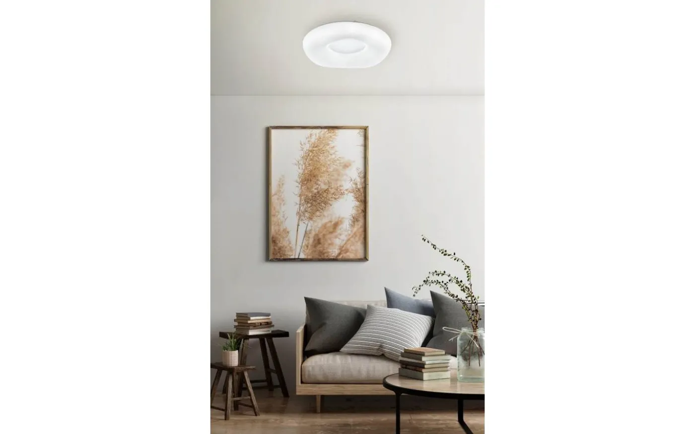 ZAMUDILO LED-taklampan har en rundad vit plastkåpa med kristalleffekt. När ljuset är på skapar det ett gnistrande utseende. De integrerade lysdioderna ger ett behagligt ljus som kan justeras efter behov. Du kan välja mellan varmvitt, neutralvitt och kallvitt ljus. Produkten är styrbar med hjälp av den medföljande fjärrkontrollen, som även erbjuder andra funktioner som dimning, timer och nattlampa. Det klassiska ljuset kompletterar många interiörer, oavsett om det är i vardagsrummet, sovrummet, hallen eller barnkammaren.