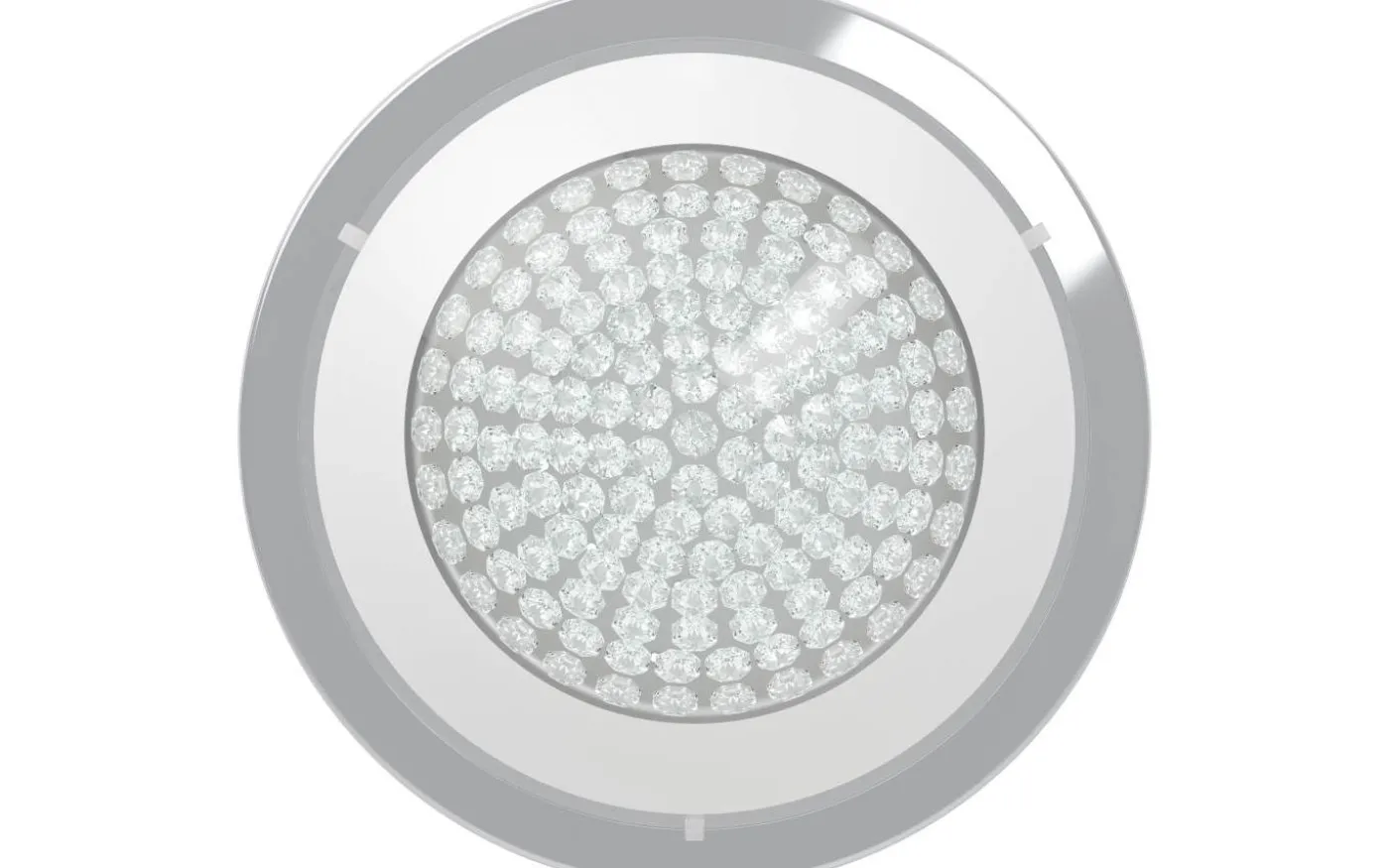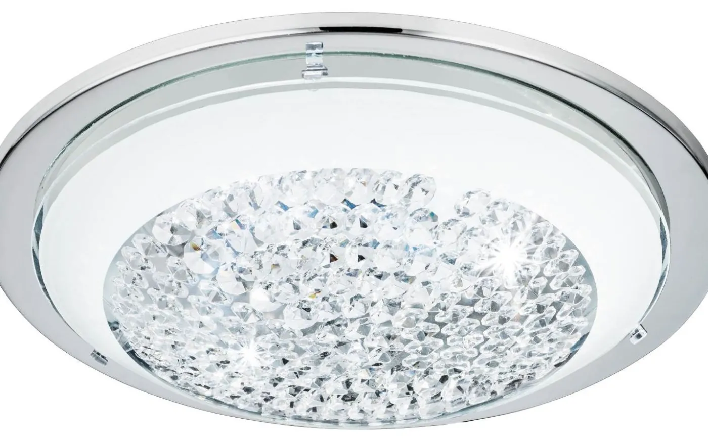 Den runda ACOLLA LED-taklampan har en cirkulär, kromfärgad metallstomme och en böjd glaskåpa. Glaskåpan har en matt vit beläggning men lämnas klar i mitten så att de gnistrande dekorativa kristallerna inuti kan synas igenom bakom glaset. De integrerade lysdioderna ger ett behagligt, varmvitt ljus. Den eleganta kombinationen av krom och kristall ger en touch av stil till ditt hem och låter de glittrande elementen komma till sin rätt.