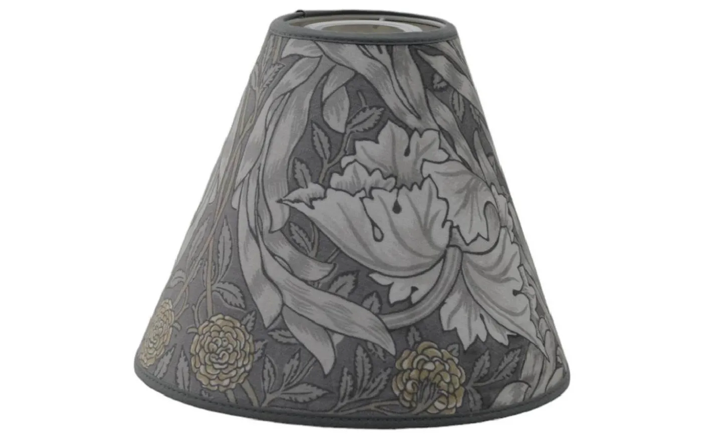 Sofistikerad toppringsskärm i sammet med William Morris kraftfulla Africa Marigold-mönster i ljusa limestone-toner. Den klassiska toppringen kombinerat med det stora, expressiva blommotiven på lyxig sammet skapar harmonisk elegans med ljus, modern känsla. Diameter 22 cm. En raffinerad accent som tillför både karaktär och tidlös brittisk designkänsla med skandinavisk touch.