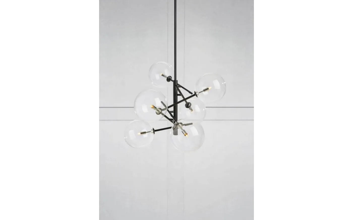 Vackra Andrew takpendel från Markslöjd, en iögonfallande taklampa i svart metall och sex glober i klart glas. Tidlös design som passar i de flesta hem. Lampan kan enkelt förkortas till önskad höjd och hänges enkelt på takkrok. Du justerar själv enkelt de ställbara armarna, samt justerar höjden på taklampan med hjälp av fyra stycken avtagbara rör på 30 cm (max 1,2 m).