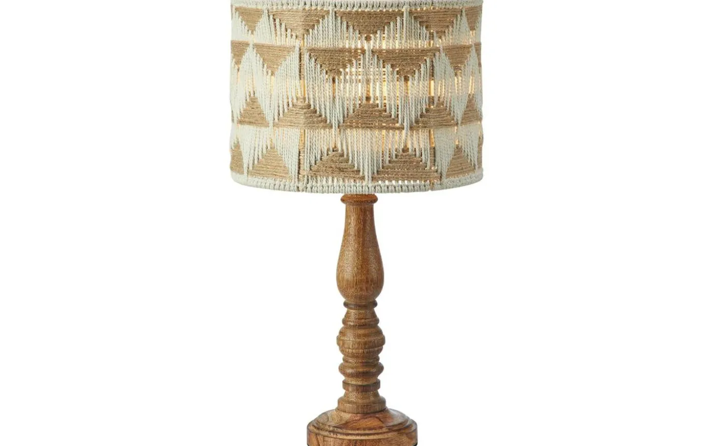 Ano från Markslöjd är en bordslampa med skärm tillverkad i jute och bomull och lampfot i mörkbrunt mangoträ. Lampskärmen tillverkas med en speciell vävteknik där tråd lindas för hand runt en stålram vilket gör att varje exemplar får ett unikt utseende.
