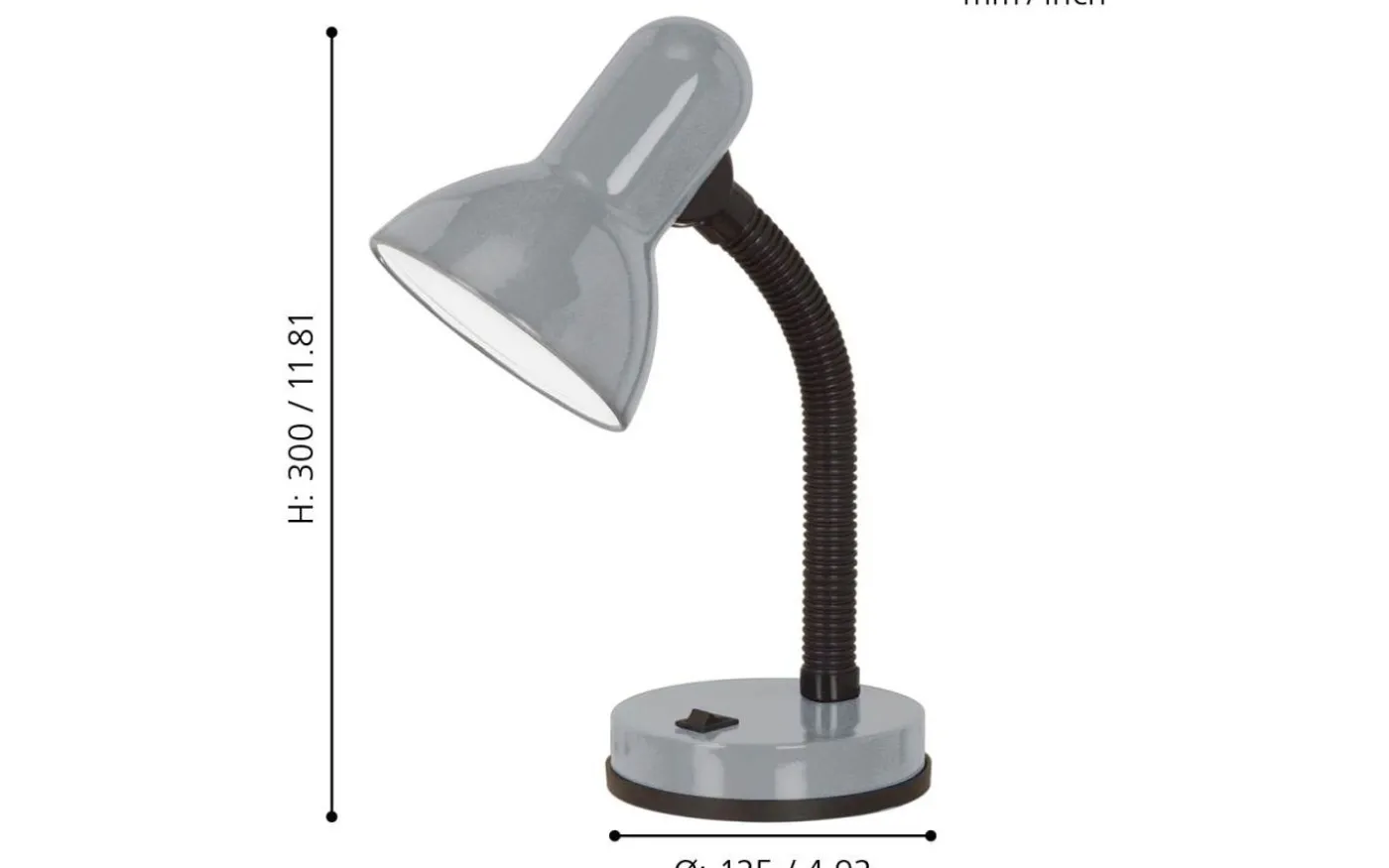 Bordslampan BASIC är gjord av silverfärgad metall och har en justerbar hals i svart plast. Tack vare lampskärmens vita inre finish och flexibla hals kan den ge optimal, fokuserad belysning till din arbetsyta. Lampan kan enkelt tändas och släckas med hjälp av vippknappen på sockeln. Med sin klassiska design ger skrivbordslampan en praktisk belysningslösning för din arbetsyta, oavsett om det är på skrivbordet på ditt kontor eller ditt hemmakontor.