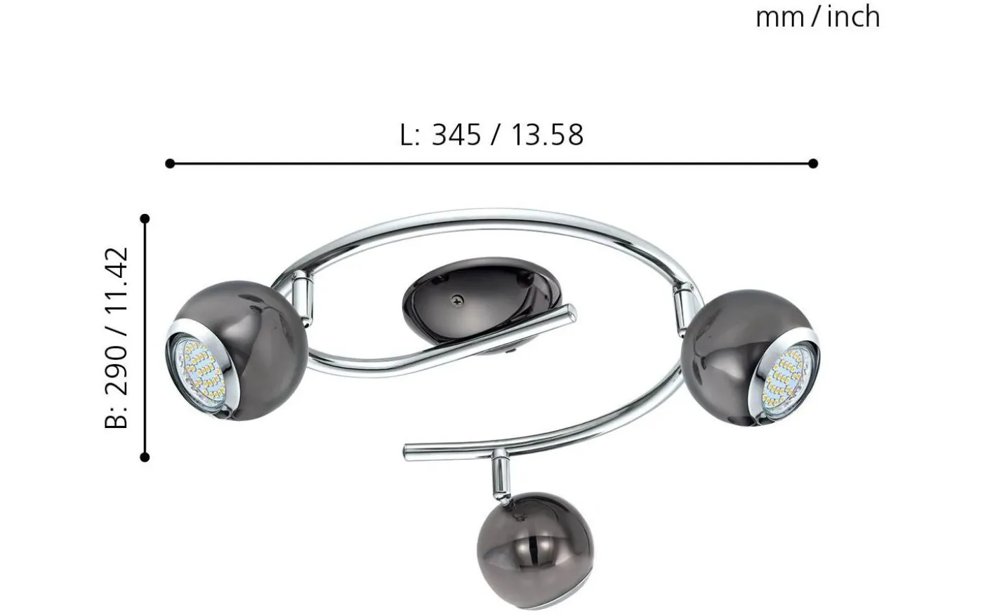 Denna spot från serien BIMEDA är tillverkad av stål i nickel-nero och förkromat stål. Den är utrustad med tre GU10-LED-lampor för ett varmvitt ljus.
