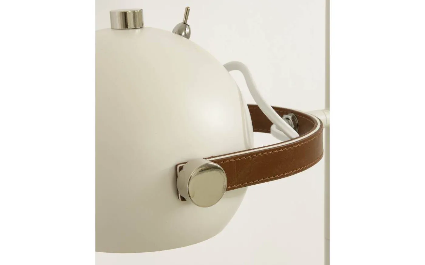 Bow golvlampa i vitlackerad metall med detaljer i krom och brunt läder. Lamphuvudet kan justeras till önskad position. Max 7W GU10, ingår ej. Strömbrytare på lamphuvudet. Trendig golvlampa i skandinavisk design.