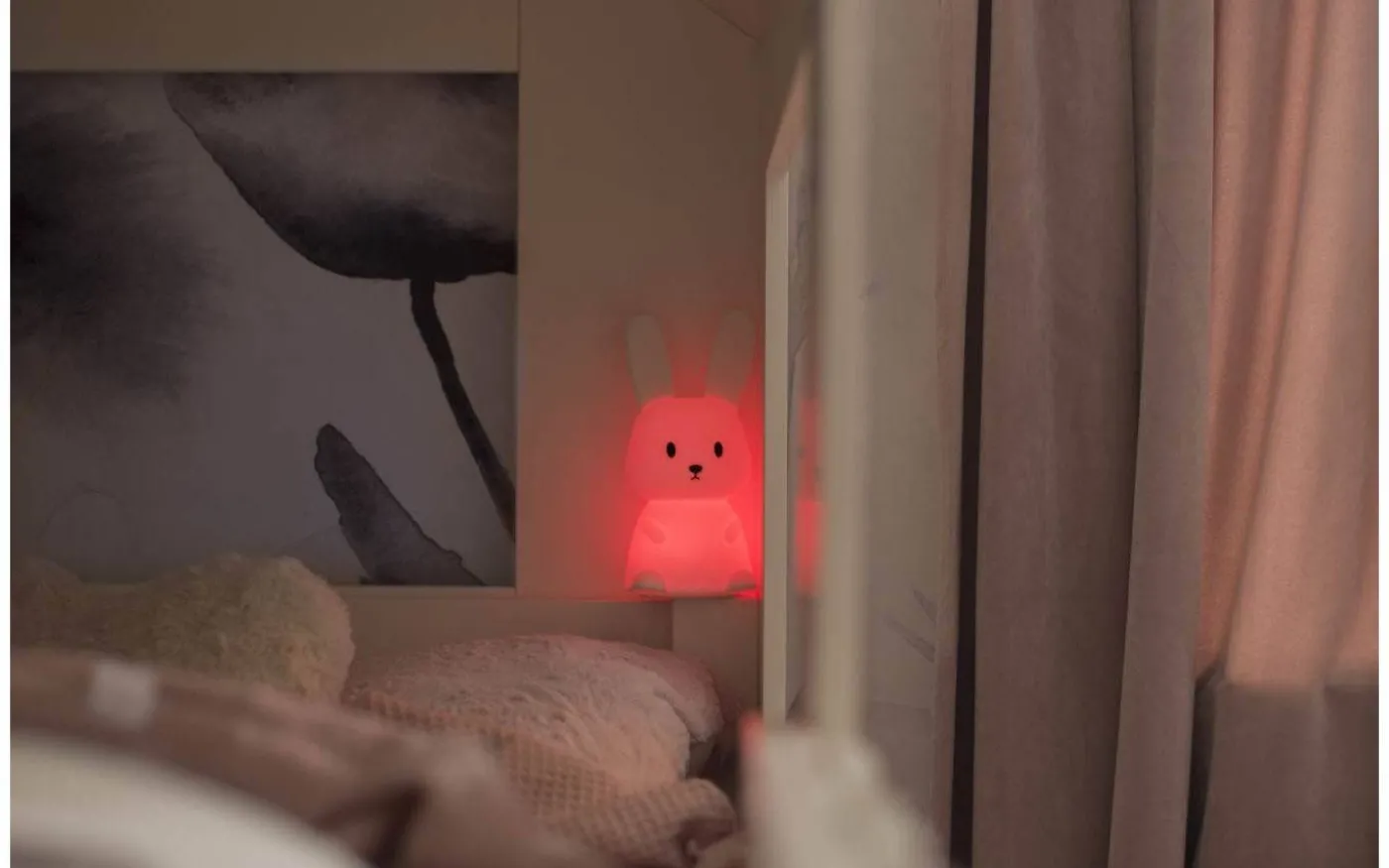 Bunny batteridriven nattlampa från Star Trading är en härlig nattlampa i form av en kanin. Med hjälp av en lätt klapp på kaninen kan du välja mellan olika härliga färger. Bunny nattlampa har inbyggd timerfunktion vilket innebär att lampa släcks efter 1-2 timmar om ingen rör sig.