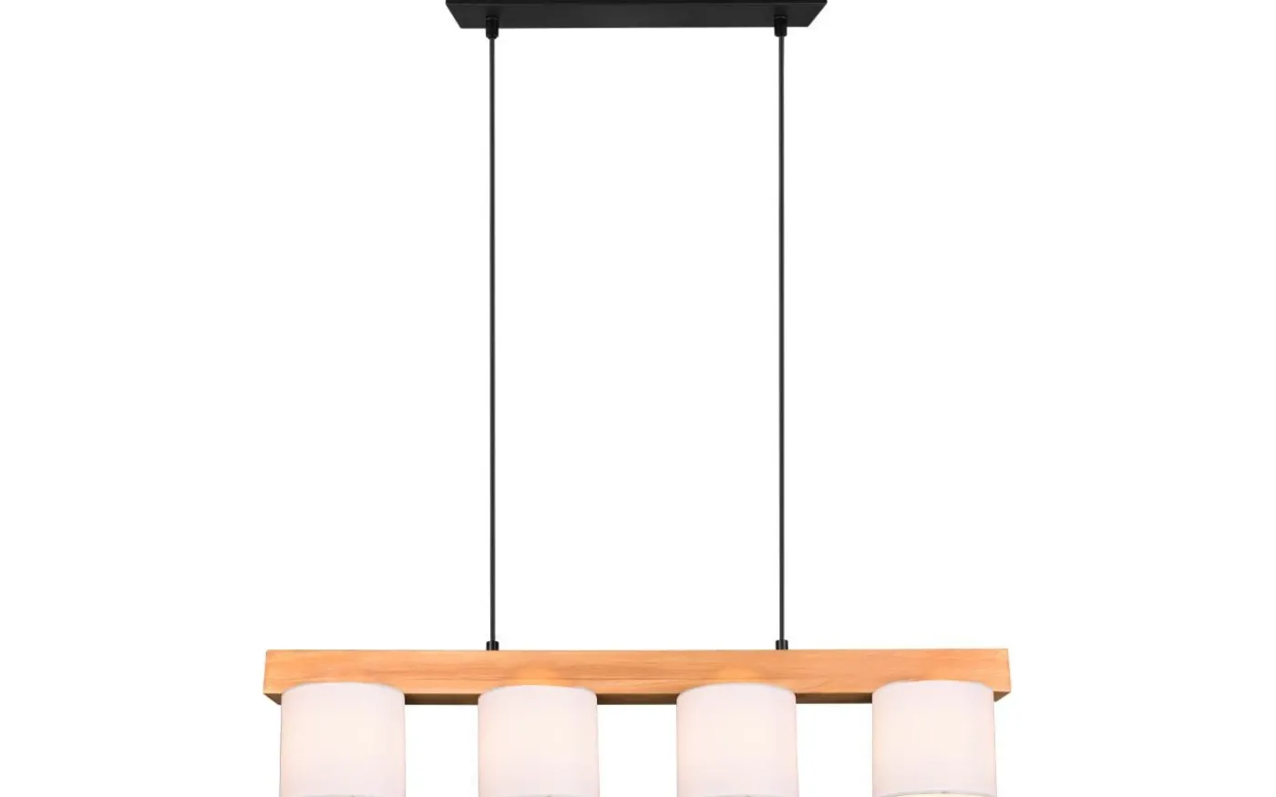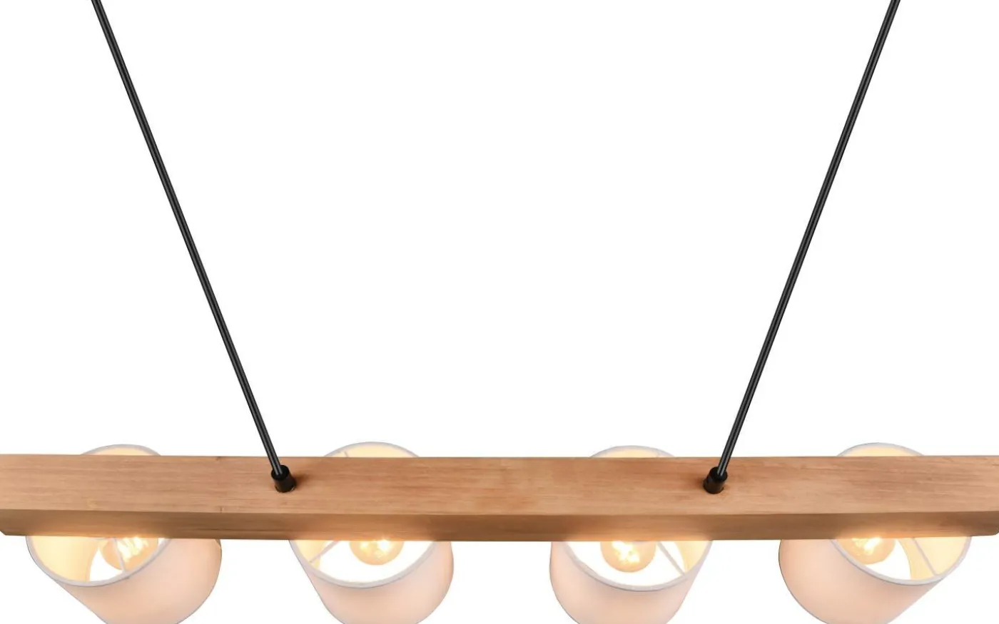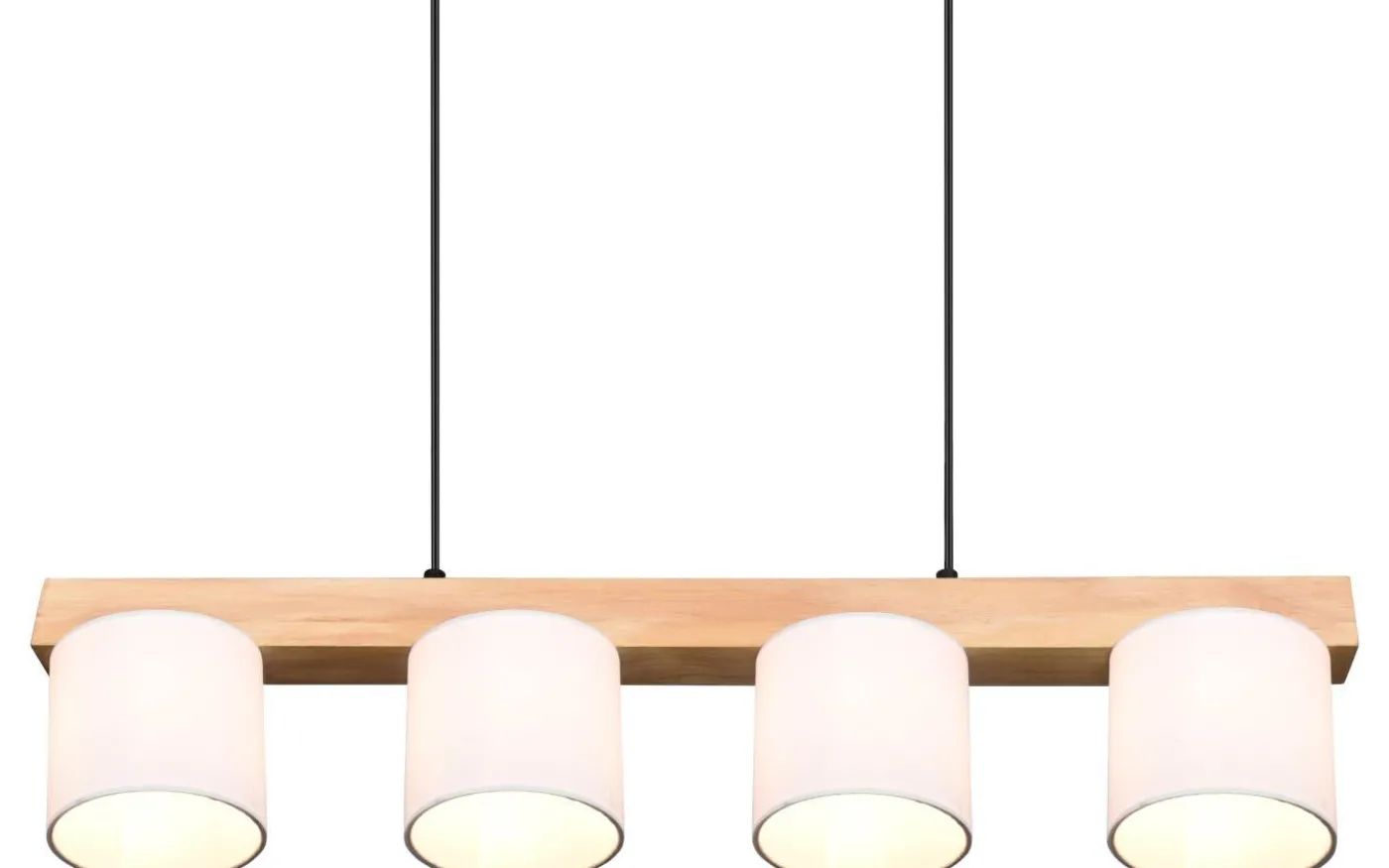 en spännande materialmix ger CAMERON vardagsrum massor av charm! De naturliga materialen, träet och tyget ger visuell värme och skapar en harmonisk helhetsbild. De vita tygskärmarna ger ett ljust och inbjudande utseende. För energibesparande belysning rekommenderas att använda en LED-lampa. Dessa är ett optimalt alternativ till konventionella halogenlampor och står för hög ljuskvalitet och energibesparingar på upp till 80 %. Dessutom hjälper LED-lampor dig att dra nytta av lång livslängd, låg värmeutveckling och samtidigt skydda miljön. Ljuskälla: exklusiv 4x E14 · max. 28W. Extra information: Justerbar i höjd, Takmontering, IP20, Lampa(or) ingår ej