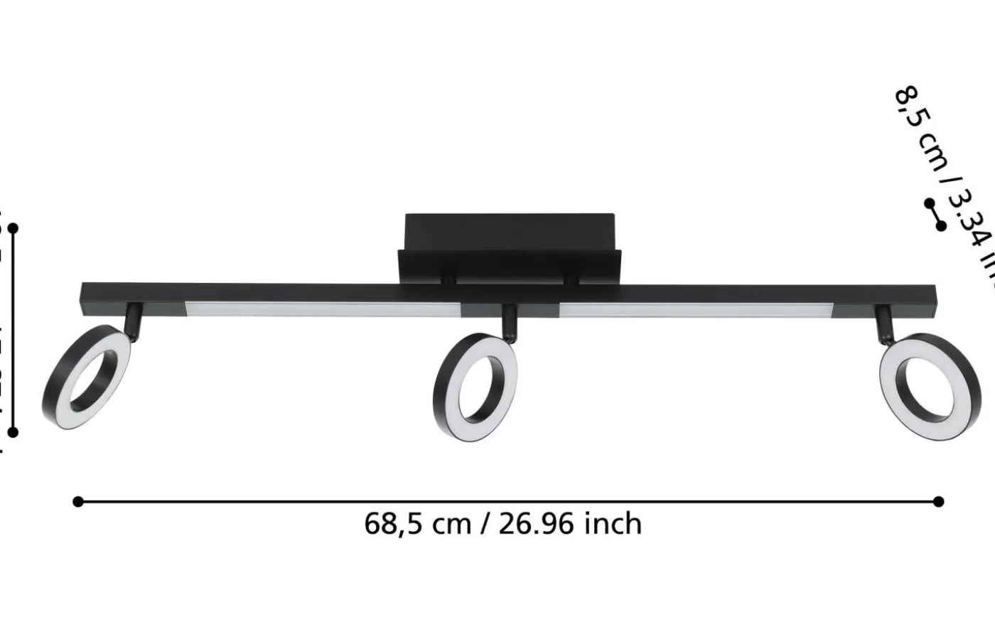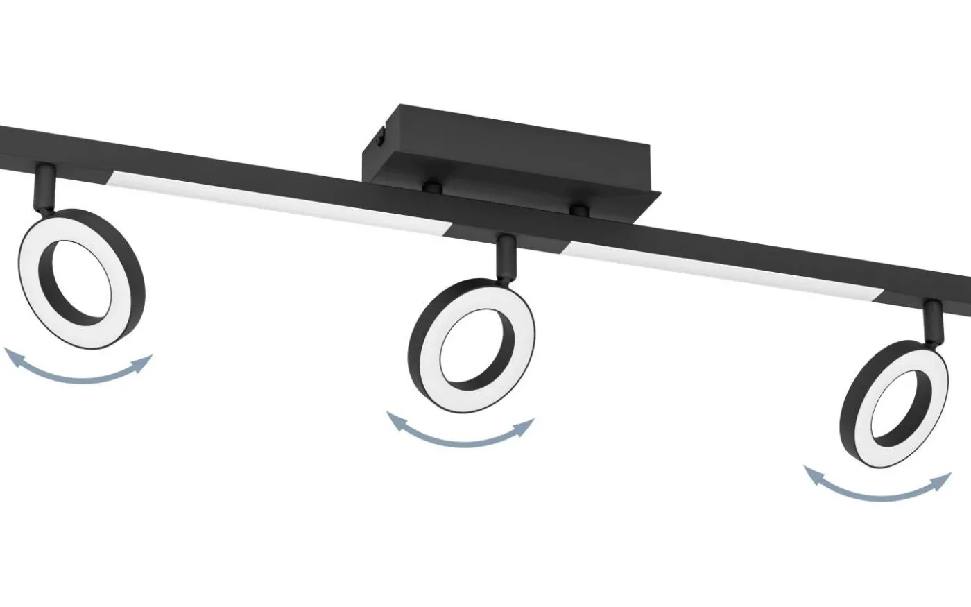 En elegant och modern svart armatur utrustad med en justerbar ringformad LED-lampa. Perfekt för moderna miljöer, den har två kraftfulla 3,3W huvudljus med en färgtemperatur på 3000K och tre extra 3,2W spotlight, vilket ger både omgivande och fokuserad belysning. Perfekt för att belysa konstverk eller förbättra arbetsplatsens belysning, dess minimalistiska design smälter sömlöst in i alla inredningar.
