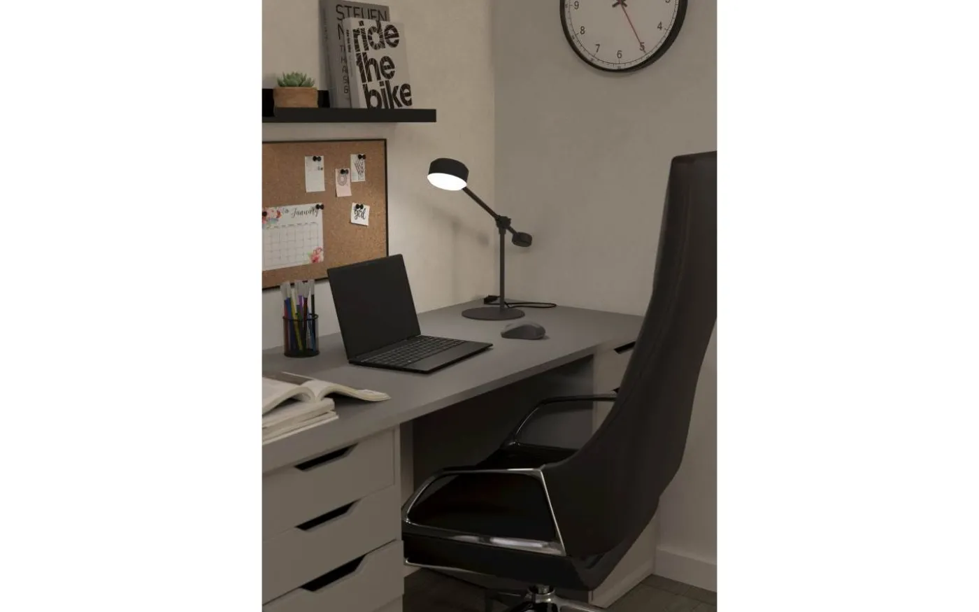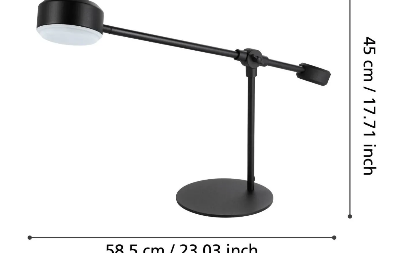 Den här är en Clavellina skrivbordslampa på 45 cm i svart utförande. Den har en LED-ljuskälla på 6,8W och ger en färgtemperatur på 3000K, vilket vanligtvis är en varm vit färg som är behaglig för ögonen och bra för att arbeta eller läsa vid skrivbordet. Designen är modern och funktionell, med en justerbar arm och huvud som gör det möjligt att rikta ljuset precis dit det behövs.