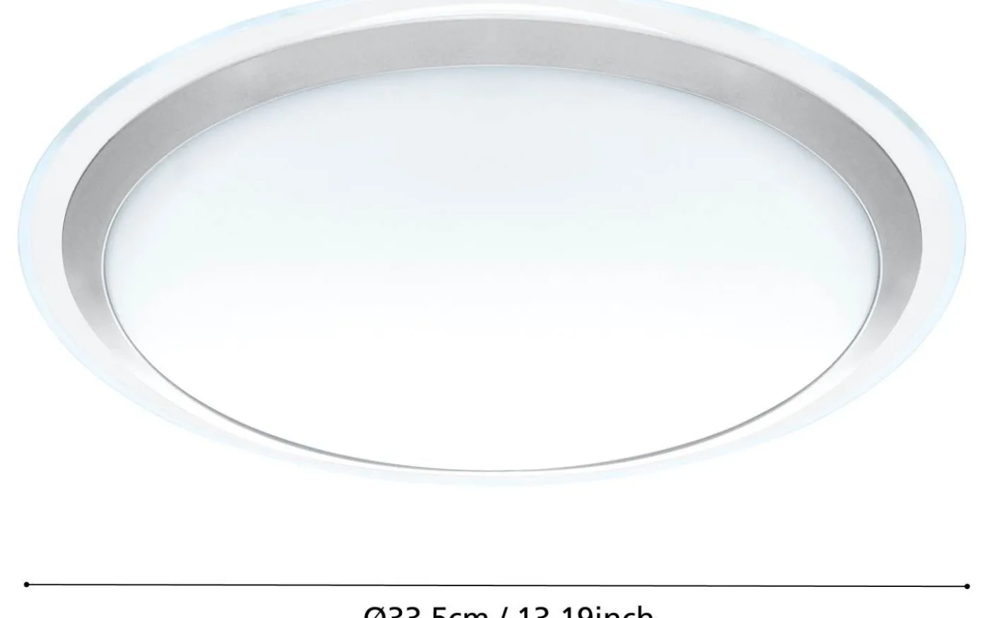 COMPETA 1 LED-taklampa har en rund vit plastljusspridare. Ljuspanelen är försedd med en dekorativ plastram med silverfinish och klar kant. De integrerade lysdioderna ger ett behagligt varmvitt ljus. Med sin klassiska design smälter taklampan sömlöst in i nästan alla interiörer och fungerar bra i alla utrymmen, oavsett om det är i köket, vardagsrummet, sovrummet eller hallen.