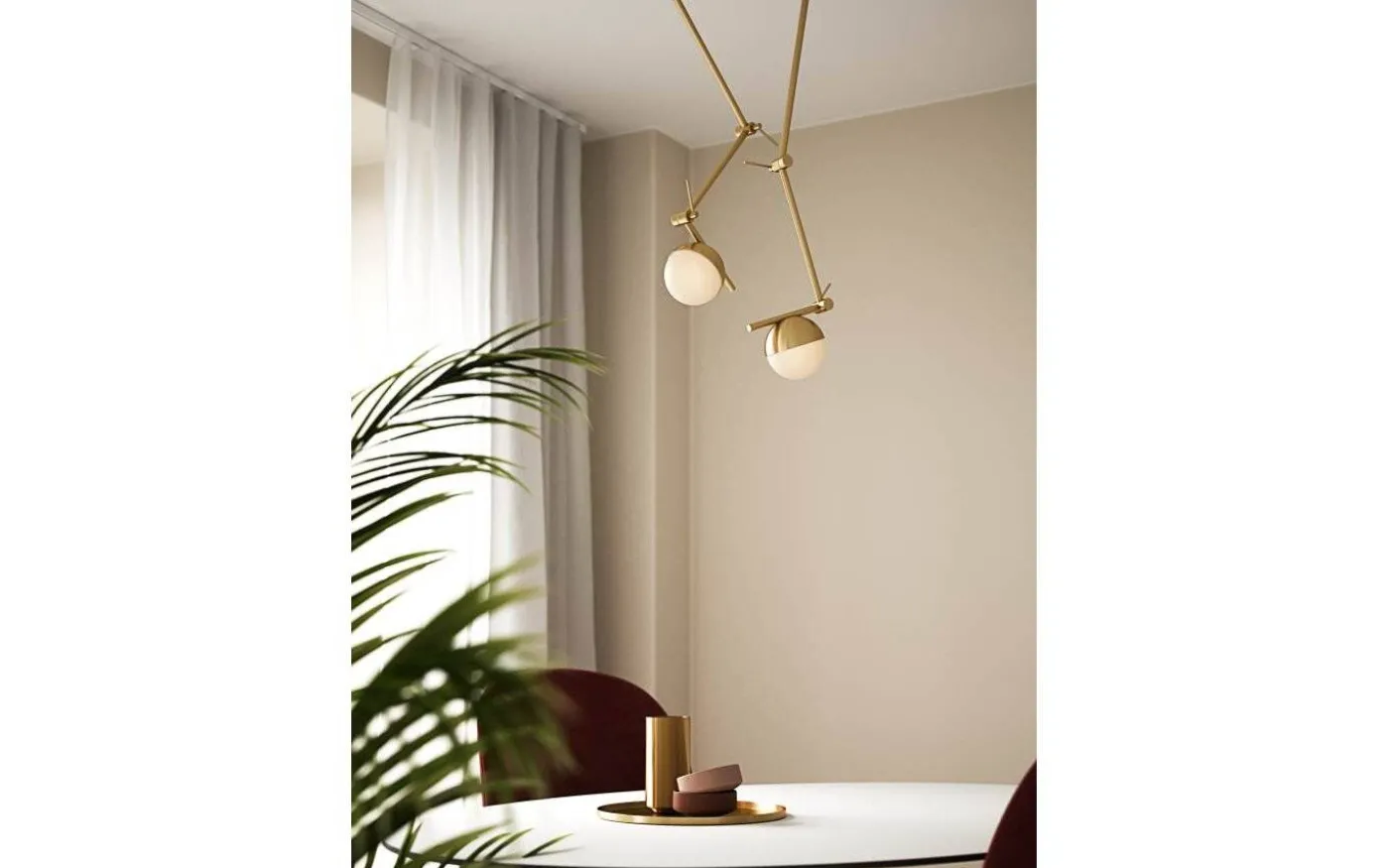 Vägg- och taklampan Contina har en stilren design. Vägg- och taklampan har en kombination av mässing och opalglas skapar ett glamoröst och modernt uttryck. Glaskulan ger ett mjukt och härligt bländfritt ljus i rummet. Den flexibla armen gör att lampan kan användas både som vägg- och taklampa.