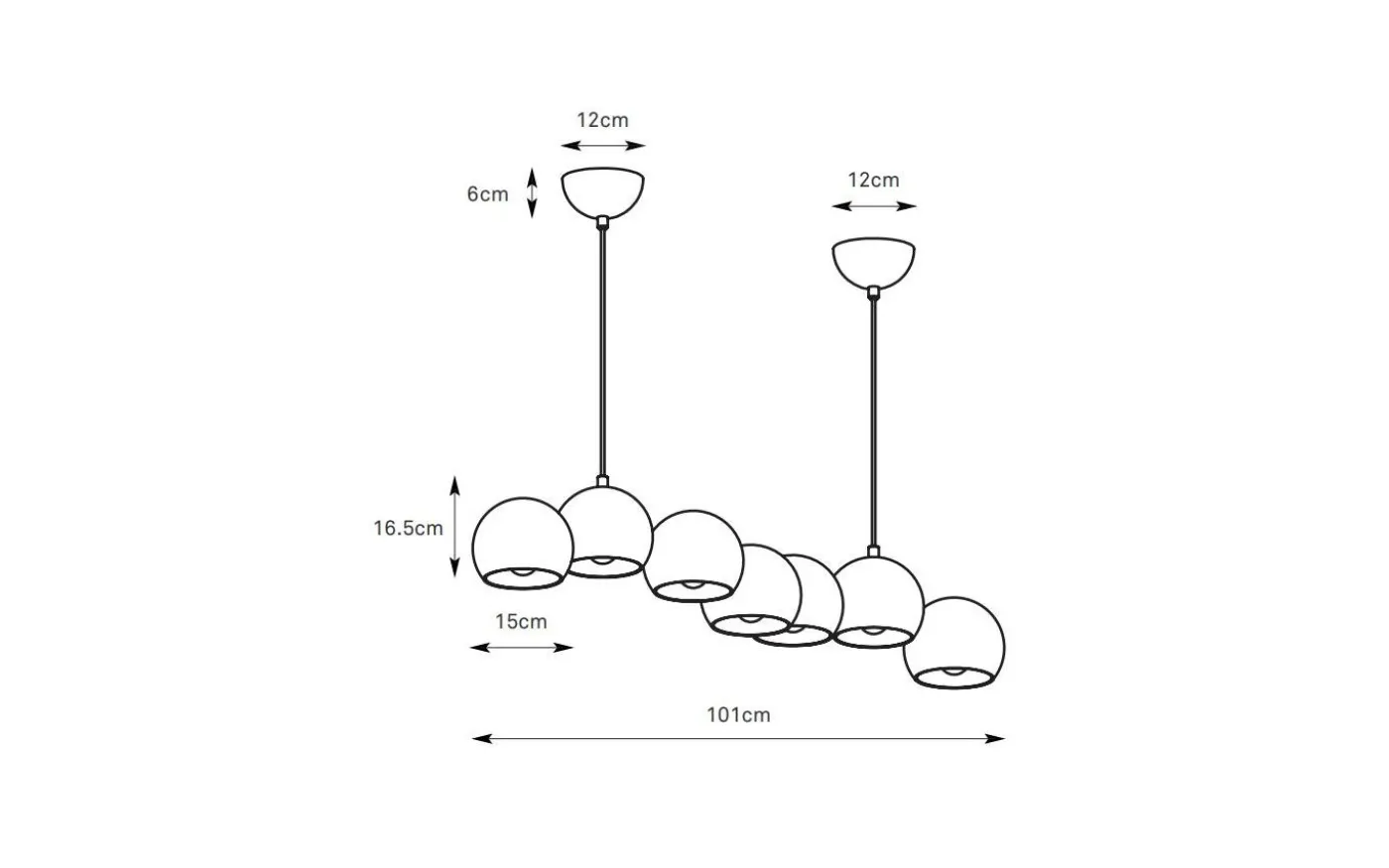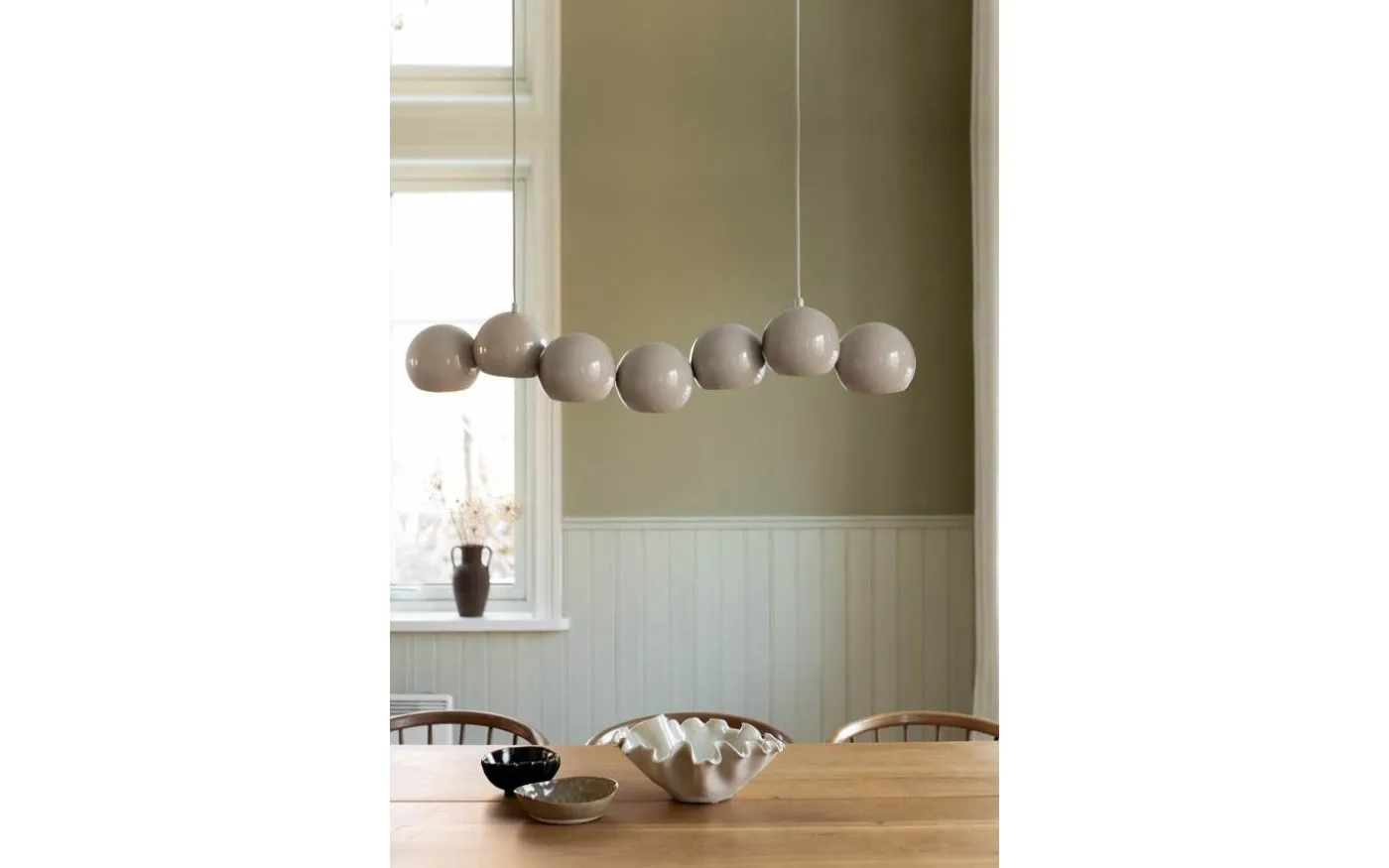 Cupolo från Markslöjd är en stilren och modern taklampa som kombinerar minimalistisk design med funktionell belysning. De sju lampkuporna är placerade på rad, vilket skapar en jämn och behaglig ljusspridning – perfekt över matbordet eller köksön.