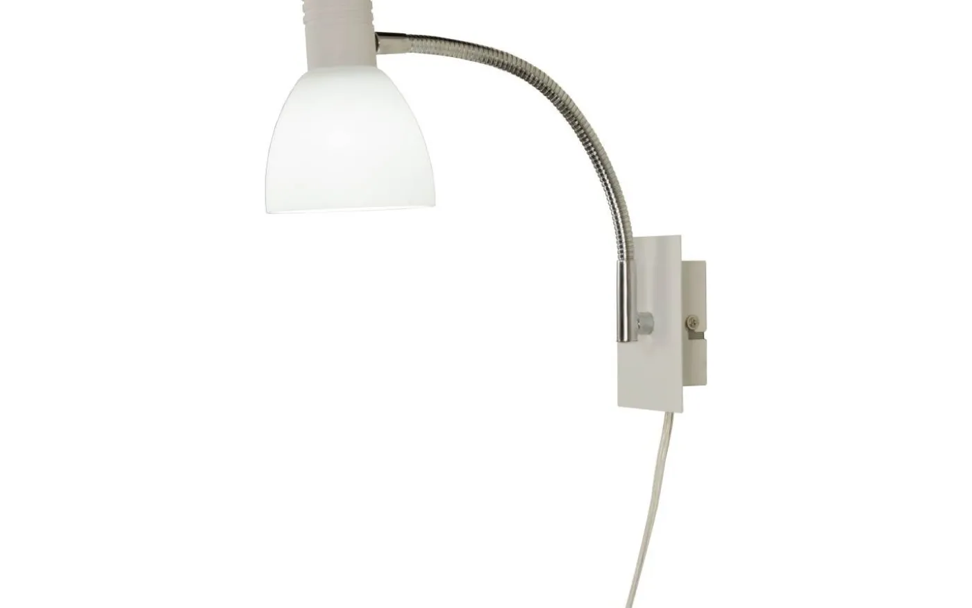Deka vägglampa i vitlackerad metall med detaljer i stål och skärm av frostat glas. Lampan justeras lätt med flexleden. Integrerad 4W LED som ger 360 lumen. Färgtemperaturen på ljuset är så kallad varmvit 3000 kelvin. Sladd med mellan strömbrytare. LED -driver är utbytbar. Denna lampa är väl lämpad som läslampa och allmän belysning i rummet. “