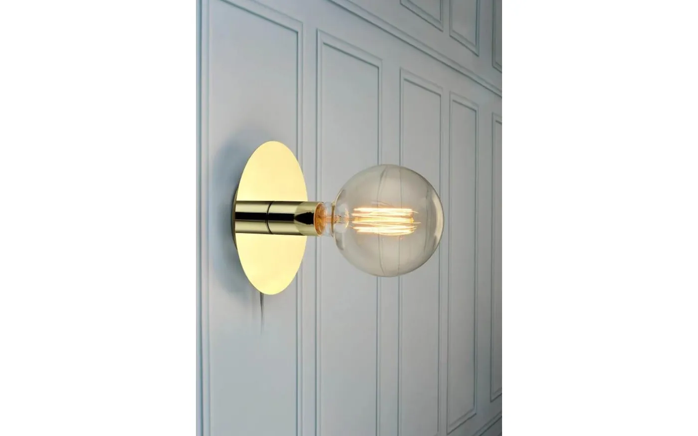 Disc vägglampa från Markslöjd är en fin vägglampa med i mässing. Komplettera denna vägglampa med en större, dekorativ ljuskälla i LED och få en modern inredningsdetalj.