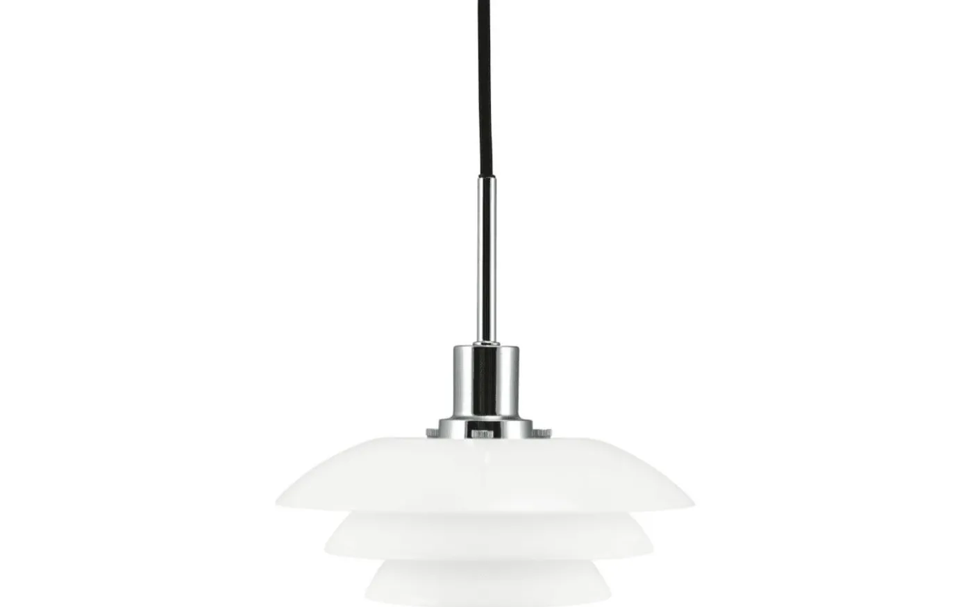 DL20 Opal Pendel med krom/metallbas är en fantastisk lampa som ger elegans till ditt matbord eller över köksbänken. med de 2 lamporna bredvid varandra ger det ett riktigt fint ljus. Ljuset lyser vackert genom de 3 olika storlekarna av nyanser och ger en mycket mysig atmosfär till rummet. På grund av placeringen av skärmarna kommer du inte att förblindas av ljuset. Levereras med 3m svart tygsladd.