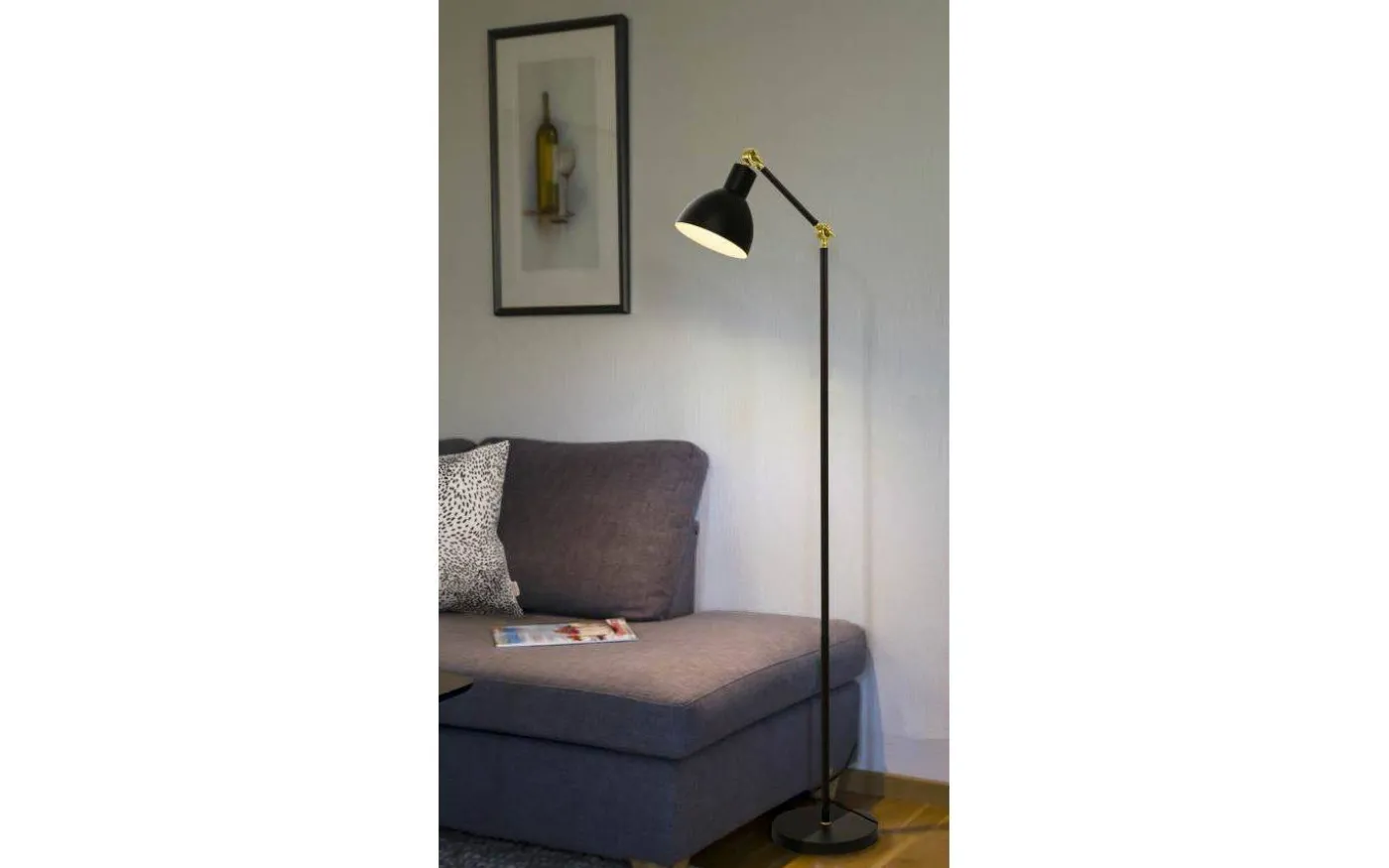 Dublin golvlampa från välkända Aneta är en stilren golvlampa i svartlackerad metall med detaljer i mässing. Golvlampan har två reglerbara ställen så att du enkelt kan justera ljuset efter önskemål och behov.