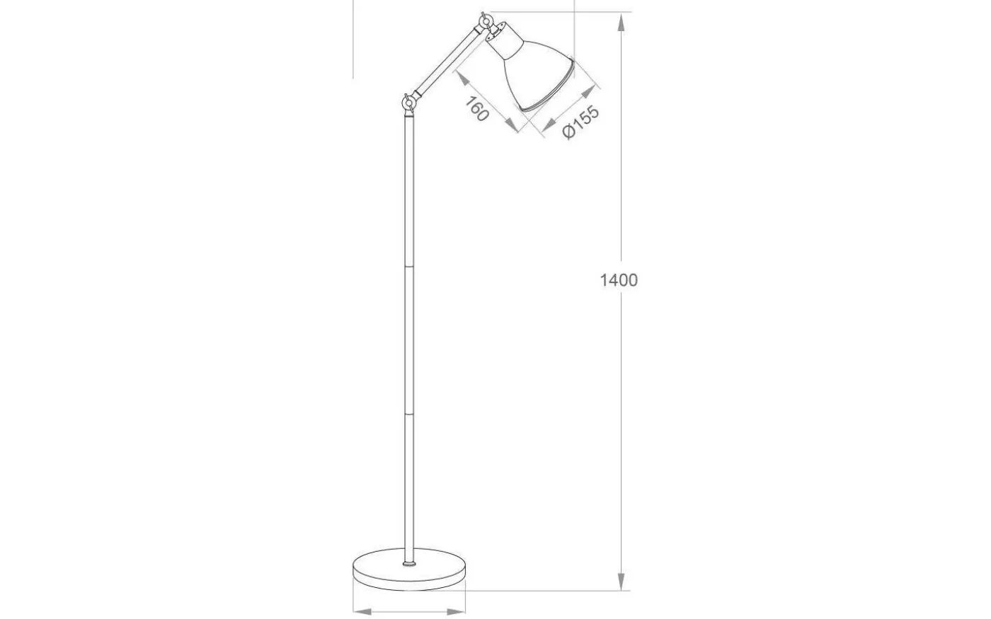 Levereras med en 2,2m lång anslutningskabel med fotströmbrytare och stickkontakt för vägguttag. Ljuskälla köpes separat, se passande förslag under tillbehör.