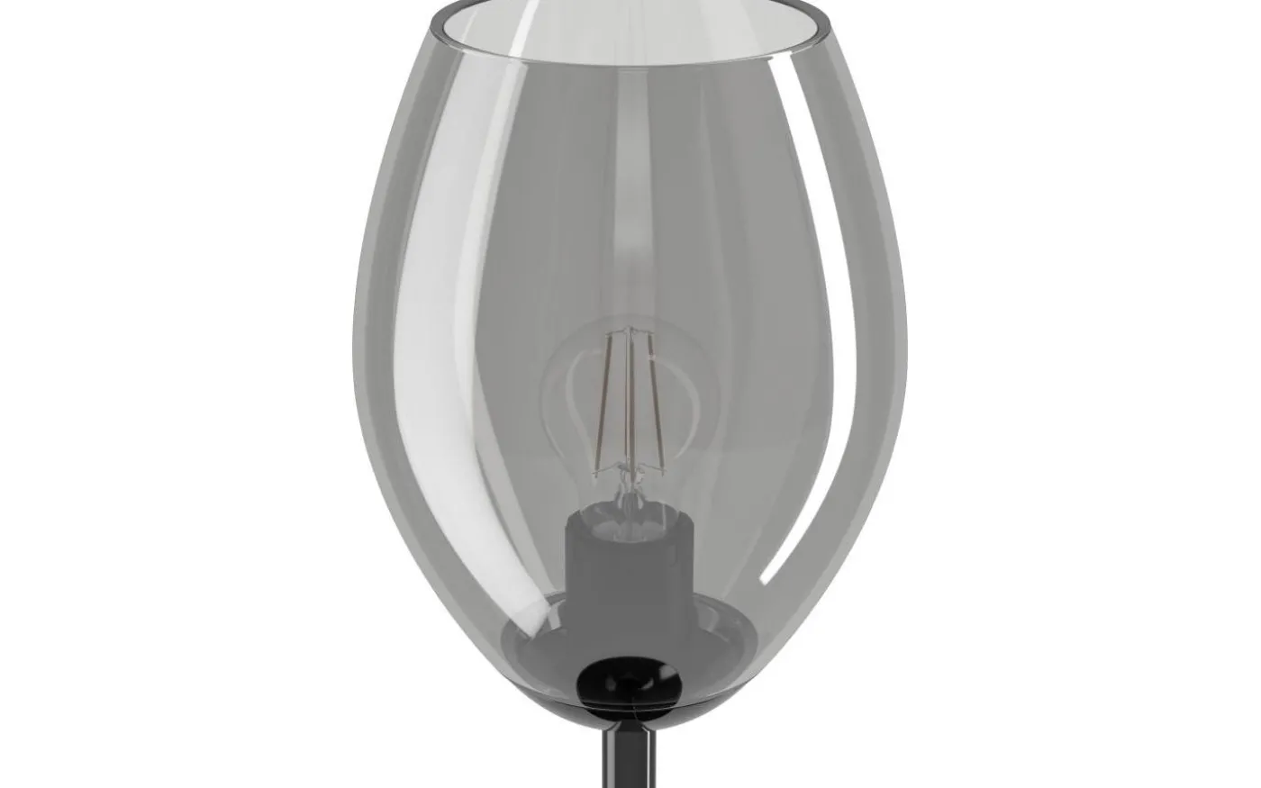 Den här är en Estanys bordslampa med en nickel finish. Designen är elegant och raffinerad, med en glasskärm som liknar formen av ett glas, vilket ger en sofistikerad look. Den står på en stadig metallfot och har en höjd på 56 cm, vilket gör den till ett utmärkt tillägg för både belysning och som en dekorativ detalj i ett rum. Den är perfekt för placering på ett sidobord eller som en accentbelysning i ett vardagsrum eller sovrum.