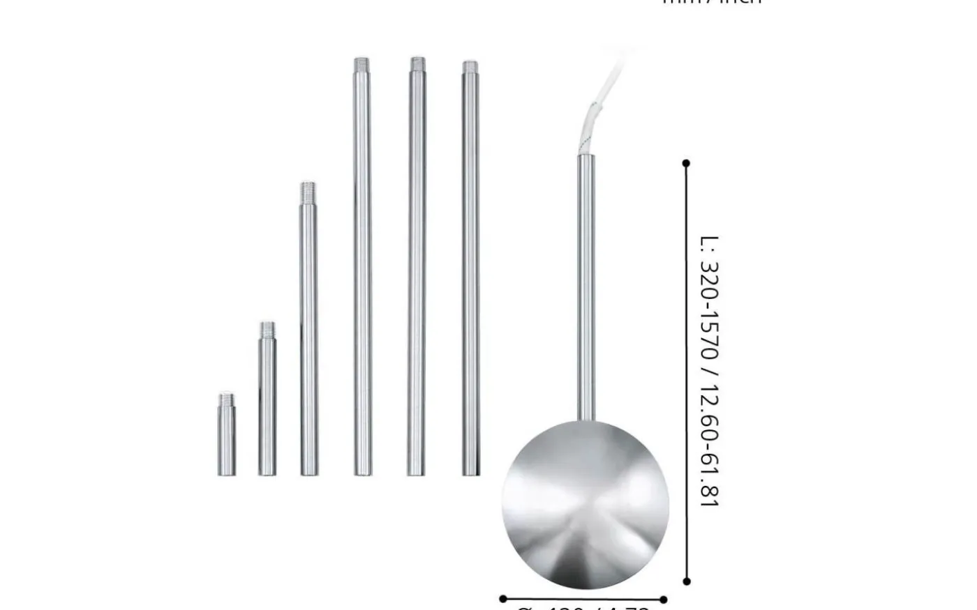 EXTENTION kabelkanalen är gjord av kromfärgad metall och gör att en strömkabel kan dras diskret längs taket. Om strömförsörjningen inte finns där lampan ska monteras i taket löser kabelkanalen detta problem och ersätter fula ledningslösningar som takkrokar. Längden på produkten kan justeras från 320 till 1570 mm genom att skruva och skruva loss de enskilda delarna. Det robusta materialet förhindrar kabelrören från att hänga och eliminerar behovet av ytterligare fästen i taket.