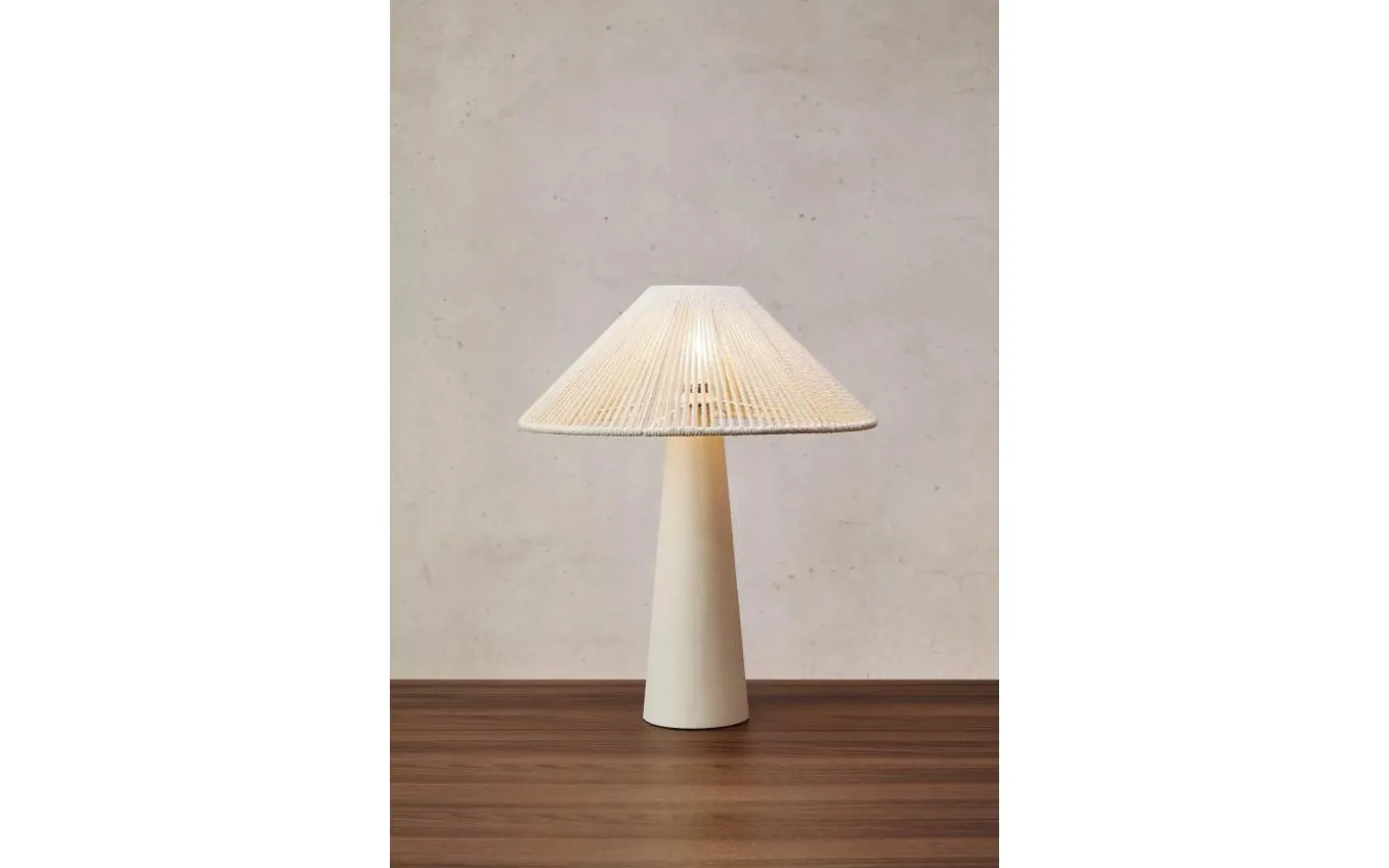 Favoro från Markslöjd är en beige bordslampa med lampskärm i naturfärgad bomullstråd och lampfot av järn med struktur likt finkornig sand. Bordslampan ger ett mjukt och modernt intryck med sina raka linjer tillsammans med strukturen på lampfoten och den mjuka bomullstråden i lampskärmen.