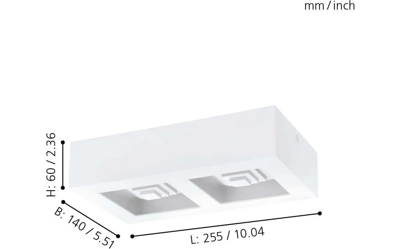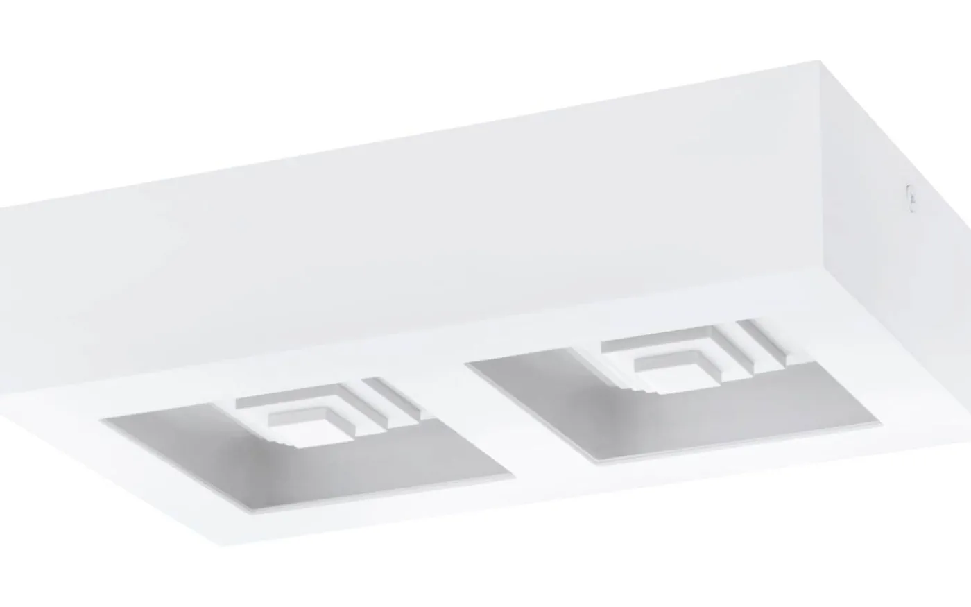 Denna vägg- eller takarmatur från serien FERREROS är gjord av vitt stål och vit plast. Den är utrustad med skyddsisolering och två LED-lampor för ett varmvitt ljus.