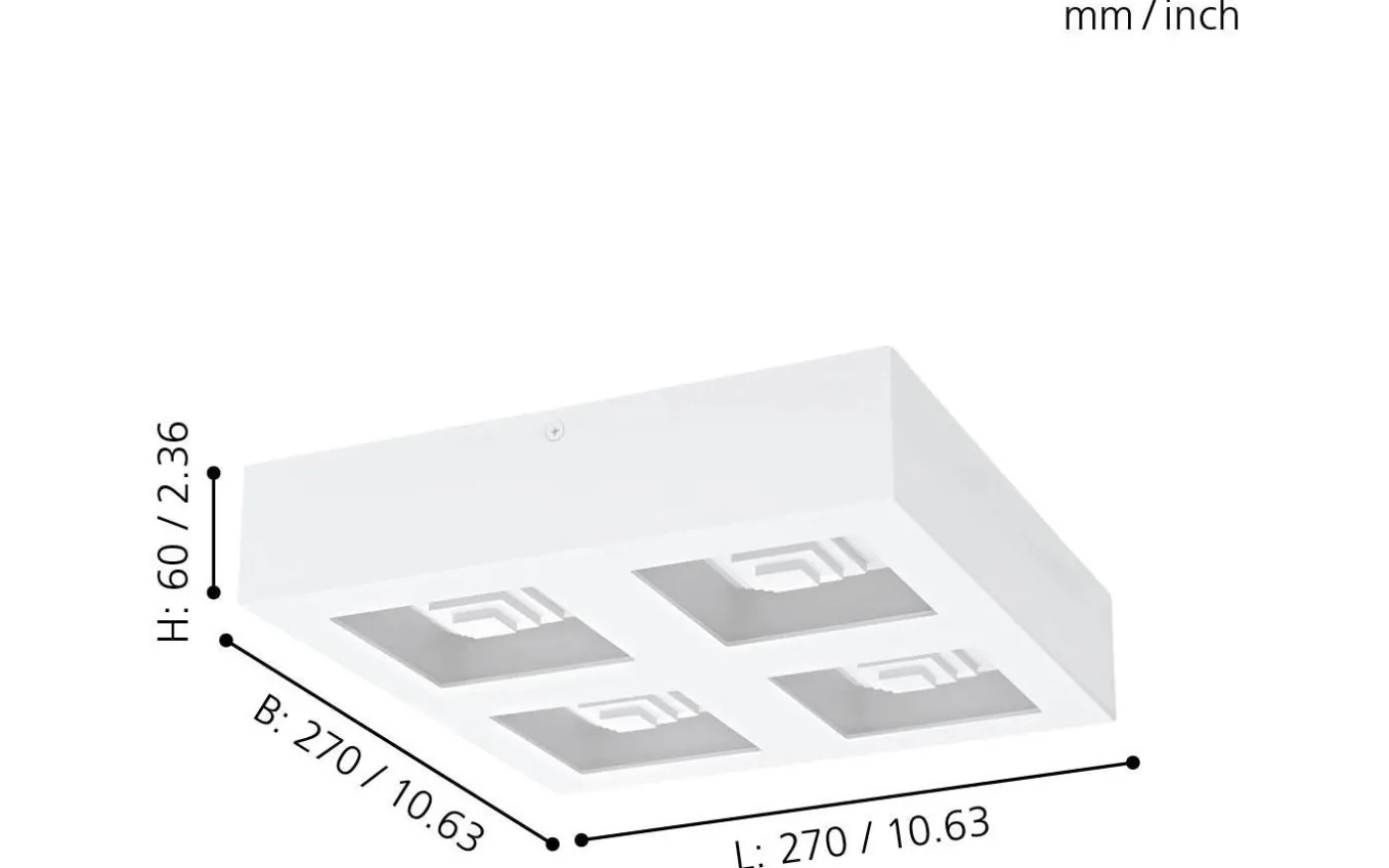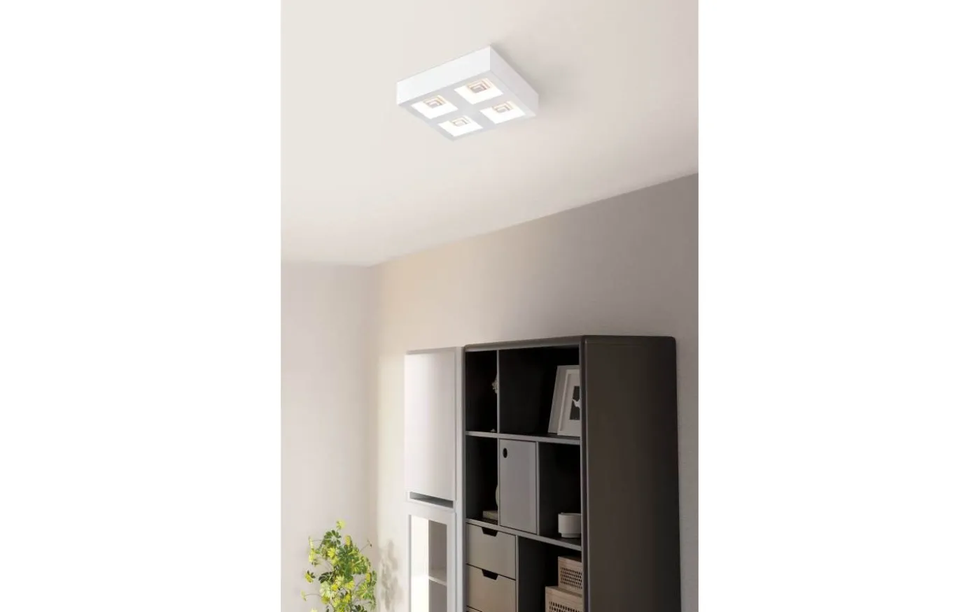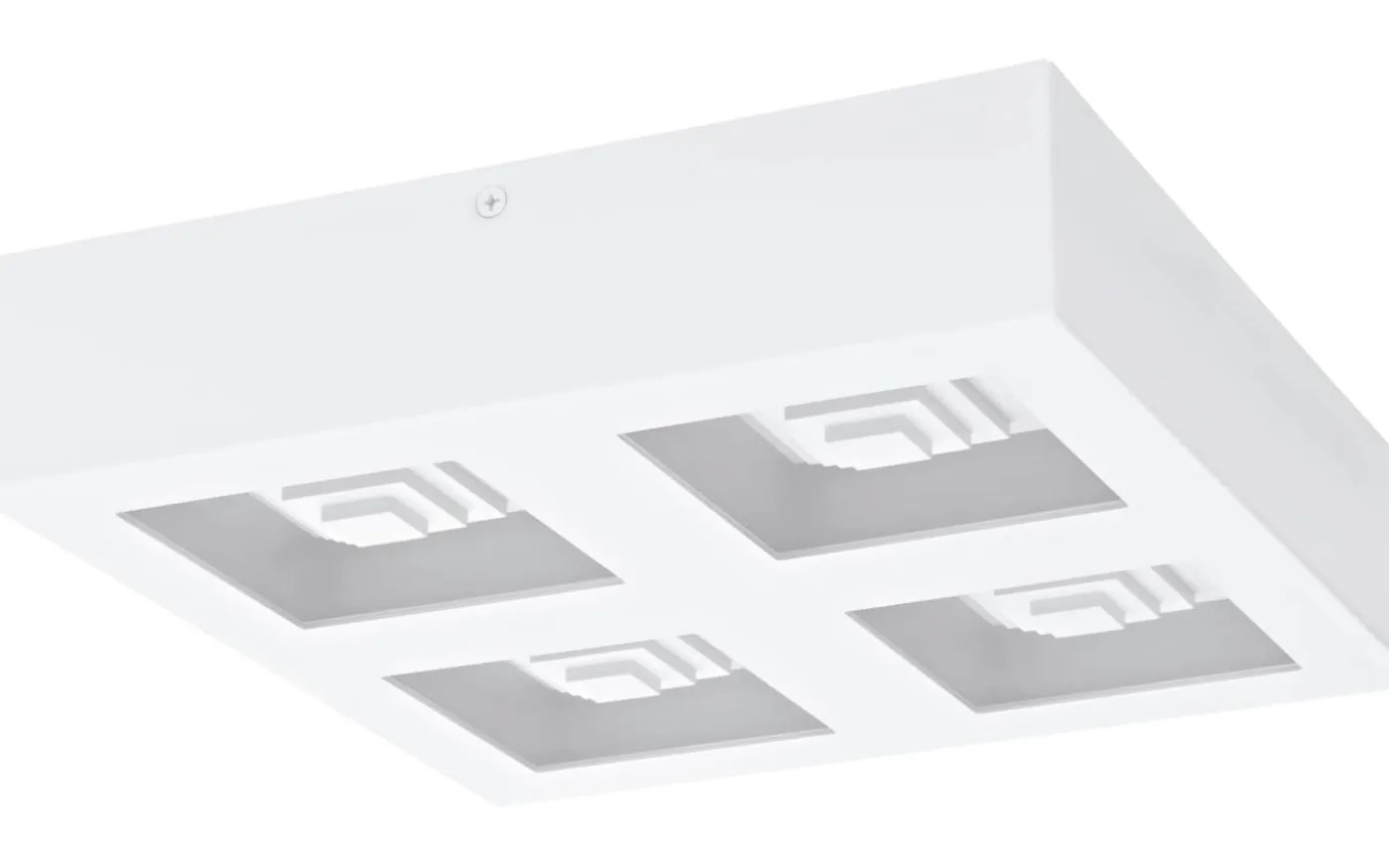 Denna vägg- eller takarmatur från serien FERREROS är gjord av vitt stål och vit plast. Den är utrustad med skyddsisolering och fyra LED-lampor för ett varmvitt ljus.
