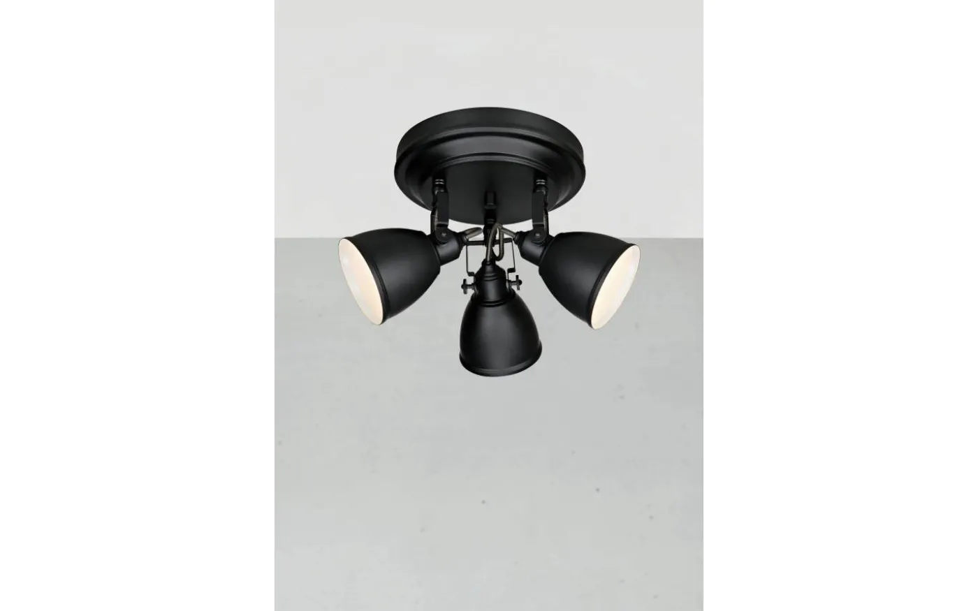 Fina takspotlighten Fjällbacka, från välkända Markslöjd, är en rund takspotlight i svart metall med tre riktigbara lamphuvuden.