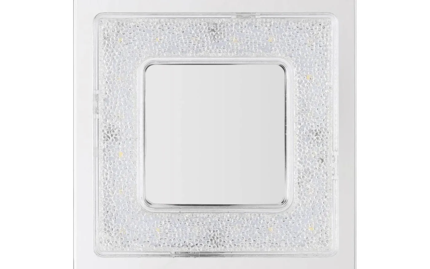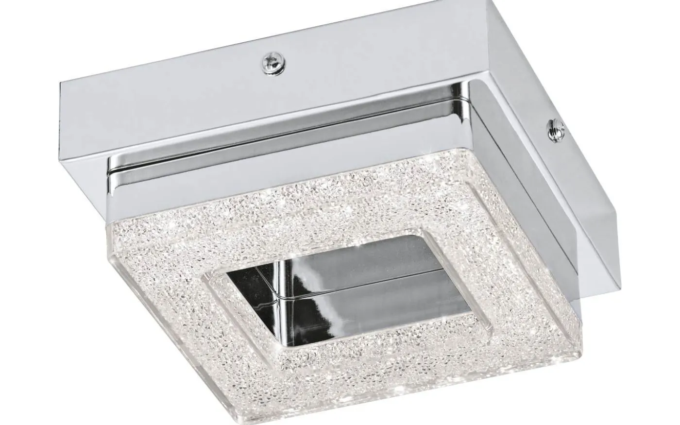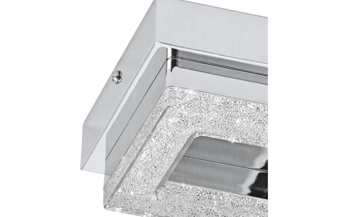 FRADELO LED-taklampan har en fyrkantig kromfärgad metallkropp och ett transparent plastljuselement med klara granulära kristaller inuti. Dessa kristaller skapar ett gnistrande, exklusivt utseende, medan de integrerade lysdioderna ger ett behagligt varmvitt ljus. Med sin klassiska design smälter produkten sömlöst in i moderna interiörer och fungerar bra i alla vardagsrum, oavsett om det är i kök, vardagsrum, sovrum, hall eller matsal.